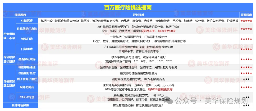 - 责任全:必须包含「一般住院医疗、重疾住院医疗、特殊门诊、住院前后门急诊」4 项核心责任,忽略花哨附加