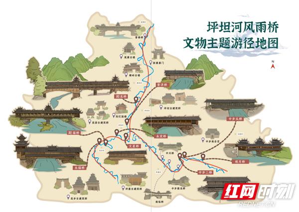 坪坦河风雨桥文物主题游径地图。(图源:《坪坦河风雨桥文物主题游径》)