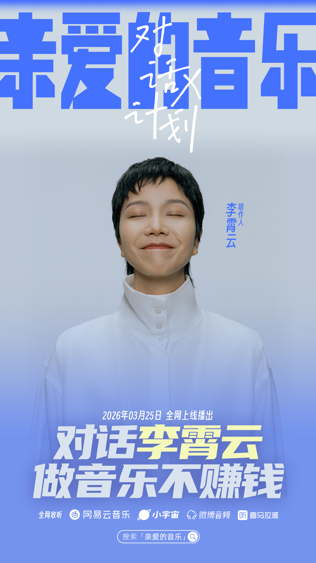 面对音乐产业现实困境,李霄云坦言做专辑、办巡演本就是纯投入而非盈利项目,需靠其他商业工作维持创作运营,却依旧坚持制作实体专辑与黑胶,延续经典蓝色设计,看重实物的触感与收藏价值。