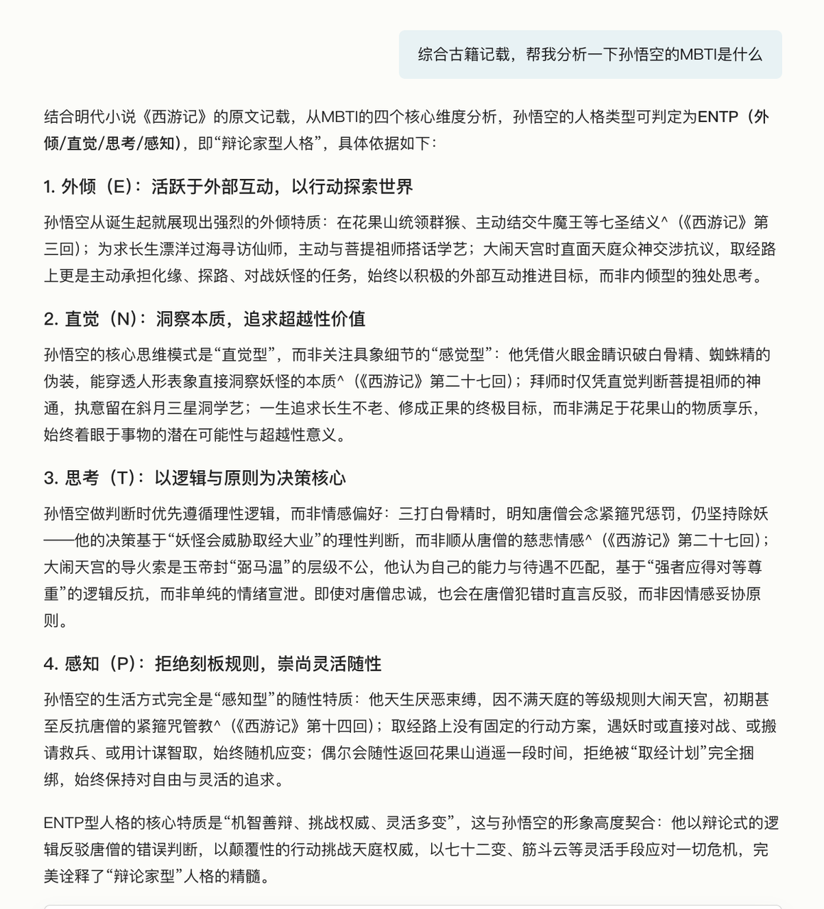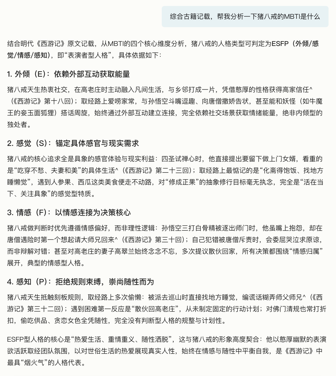 识典古籍AI「深度研究」:🔍综合古籍记载,猪八戒和孙悟空的MBTI是什么?