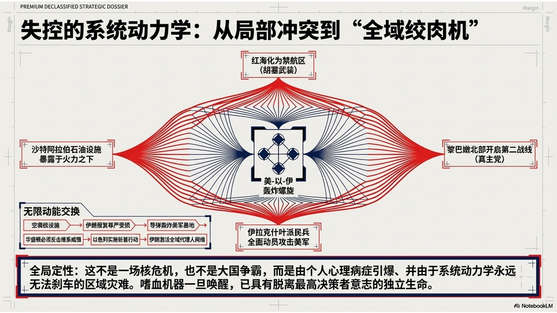 同时,节目揭示了美国决策体系被双重绑架的窘境。在内部,暴涨30%的国内油价直接威胁特朗普的蓝领票仓,迫使他为挽救选情而草率转向;在外部,以色列内塔尼亚胡政府出于自身国内政治需要,频频单方面扩大轰炸范围,彻底打乱了美国的节奏并导致整个中东局势失控。