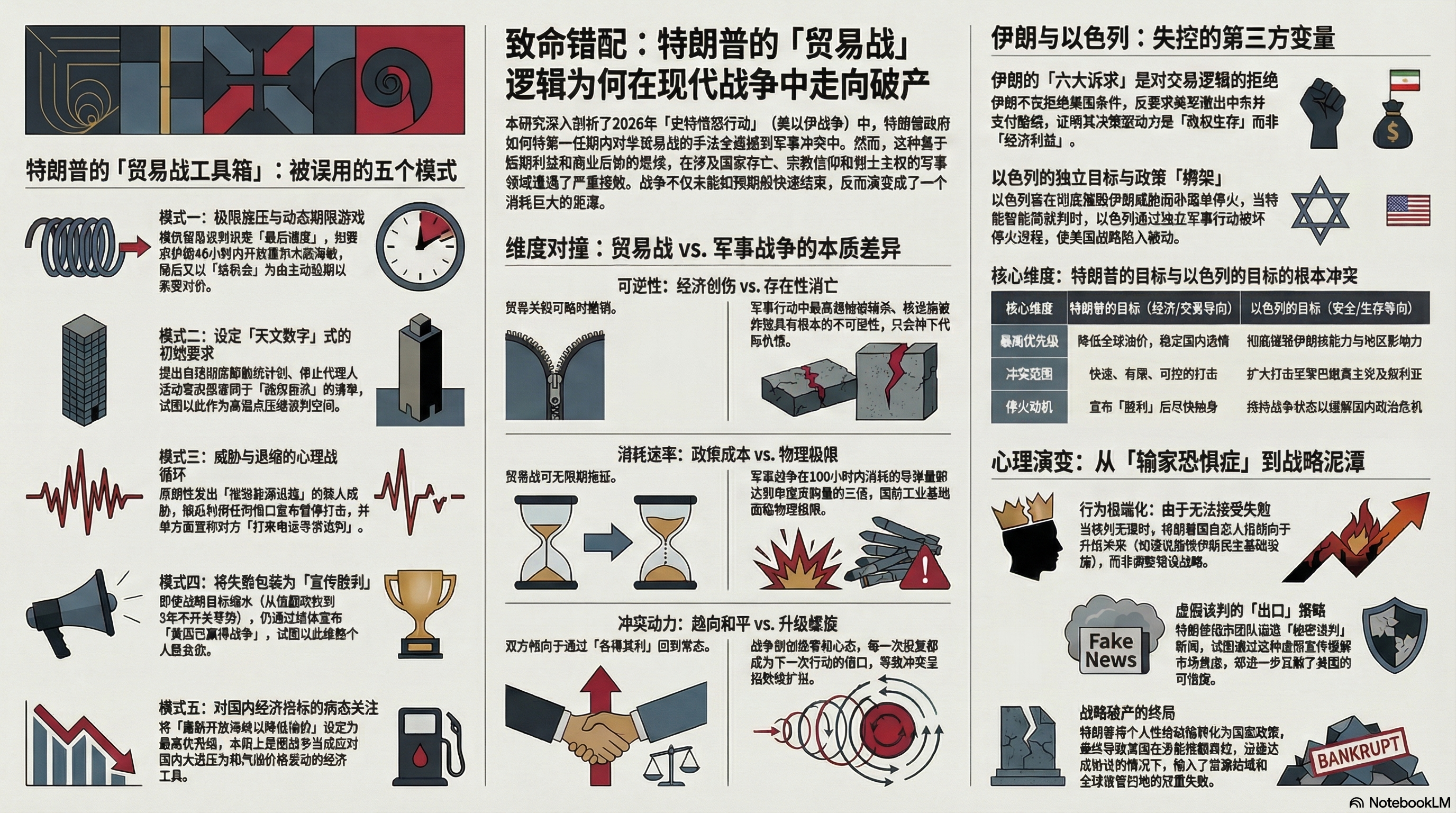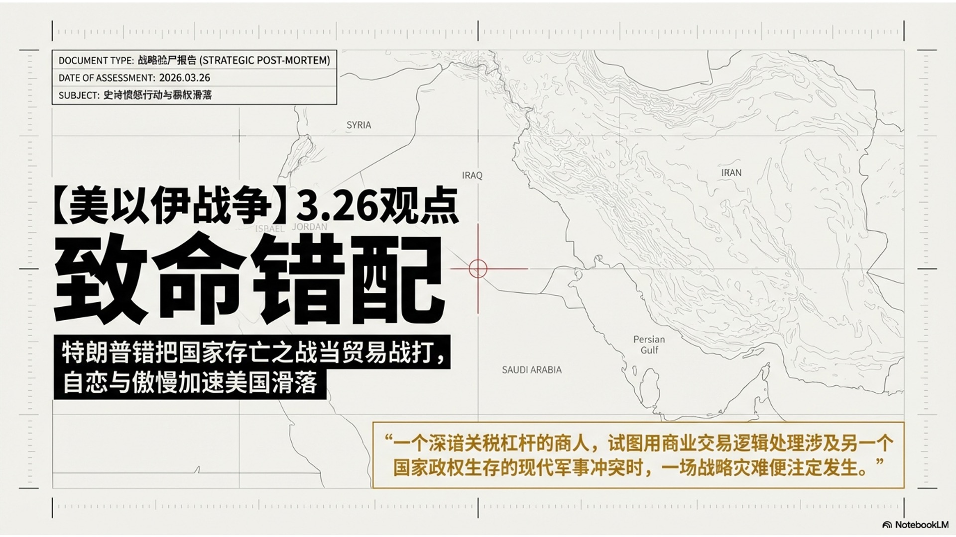 本期节目深度解析了特朗普如何将商人思维与“贸易战”手段生搬硬套至2026年的美以伊军事冲突中,从而导致美国陷入空前的战略泥潭。