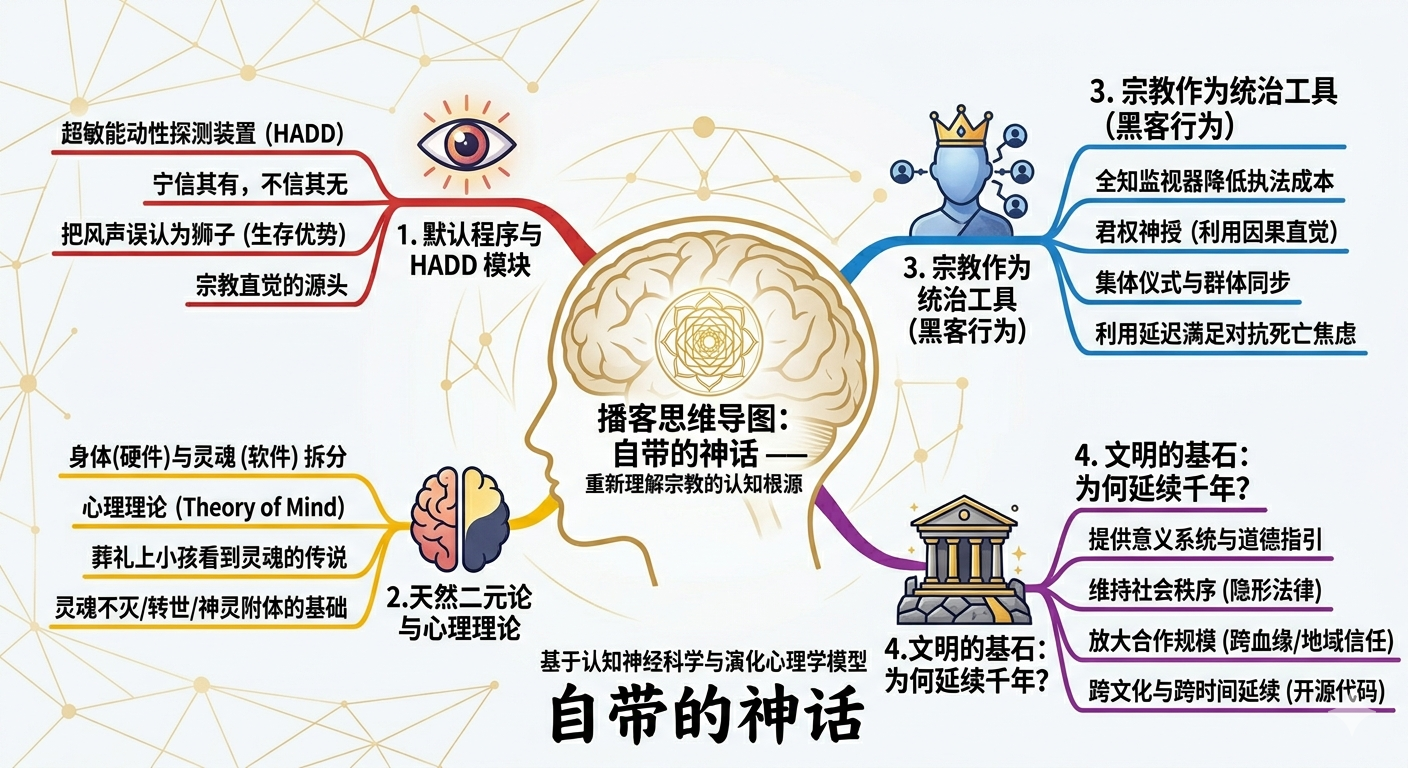 本期节目,我们将抛开传统的教义争论,从神经科学与演化心理学的硬核视角,解剖人类大脑里的“神性插件”。你会发现,宗教并非外加的文化补丁,而是大脑为了生存而自带的一套“默认程序”。