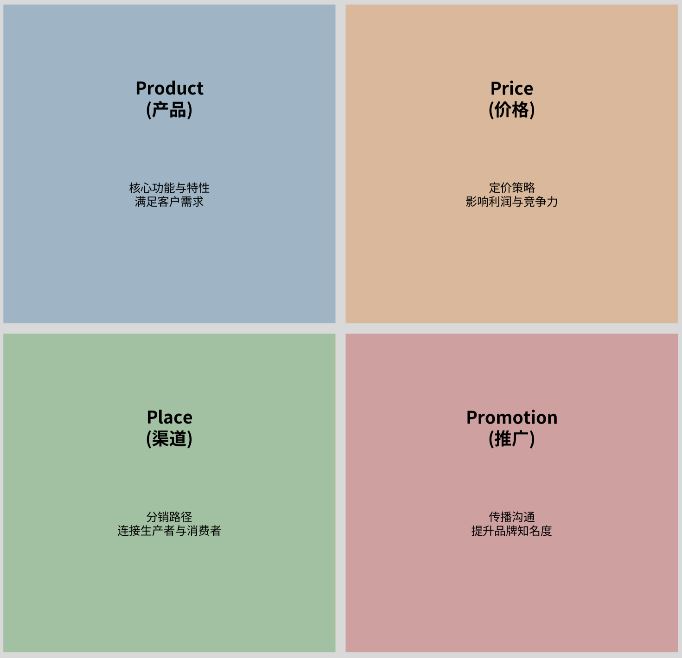 老薛第一次学了个小知识,4P营销理论,如下图↓↓↓