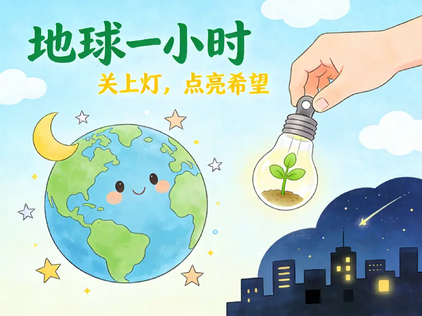 地球一小时是由世界自然基金会(WWF)发起的全球性环保活动,鼓励人们每年3月最后一个星期六晚上8:30至9:30关闭不必要的灯光一小时,以关注气候变化和自然保护。