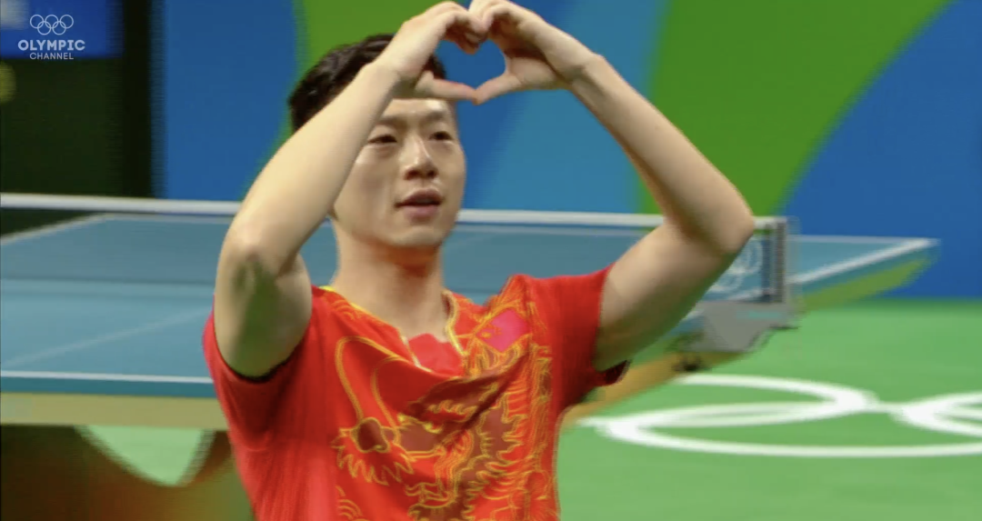 ■图 / 2016 里约奥运乒乓球男单决赛,马龙夺得冠军后,双手比「心」绕场半周(图片来源于网络)