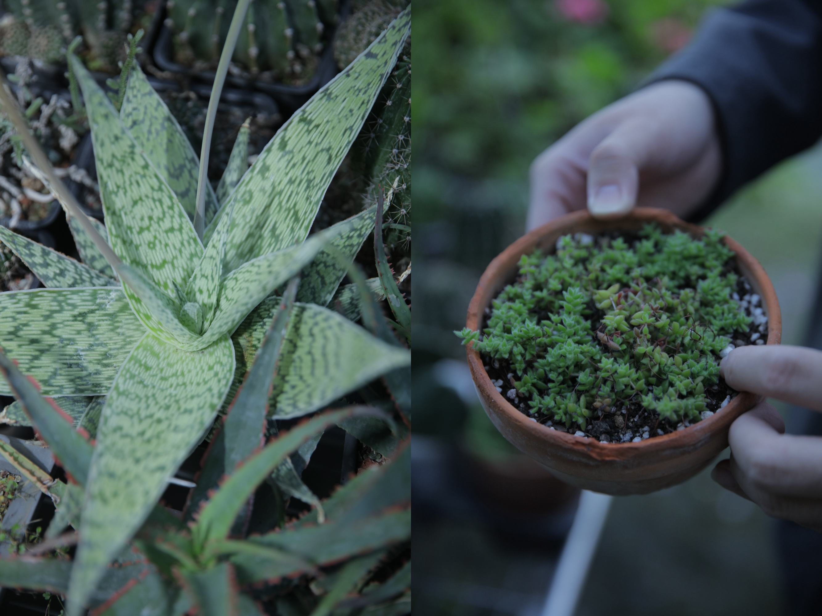 *植物大棚里的圣诞芦荟(左)、小绒塔(右)