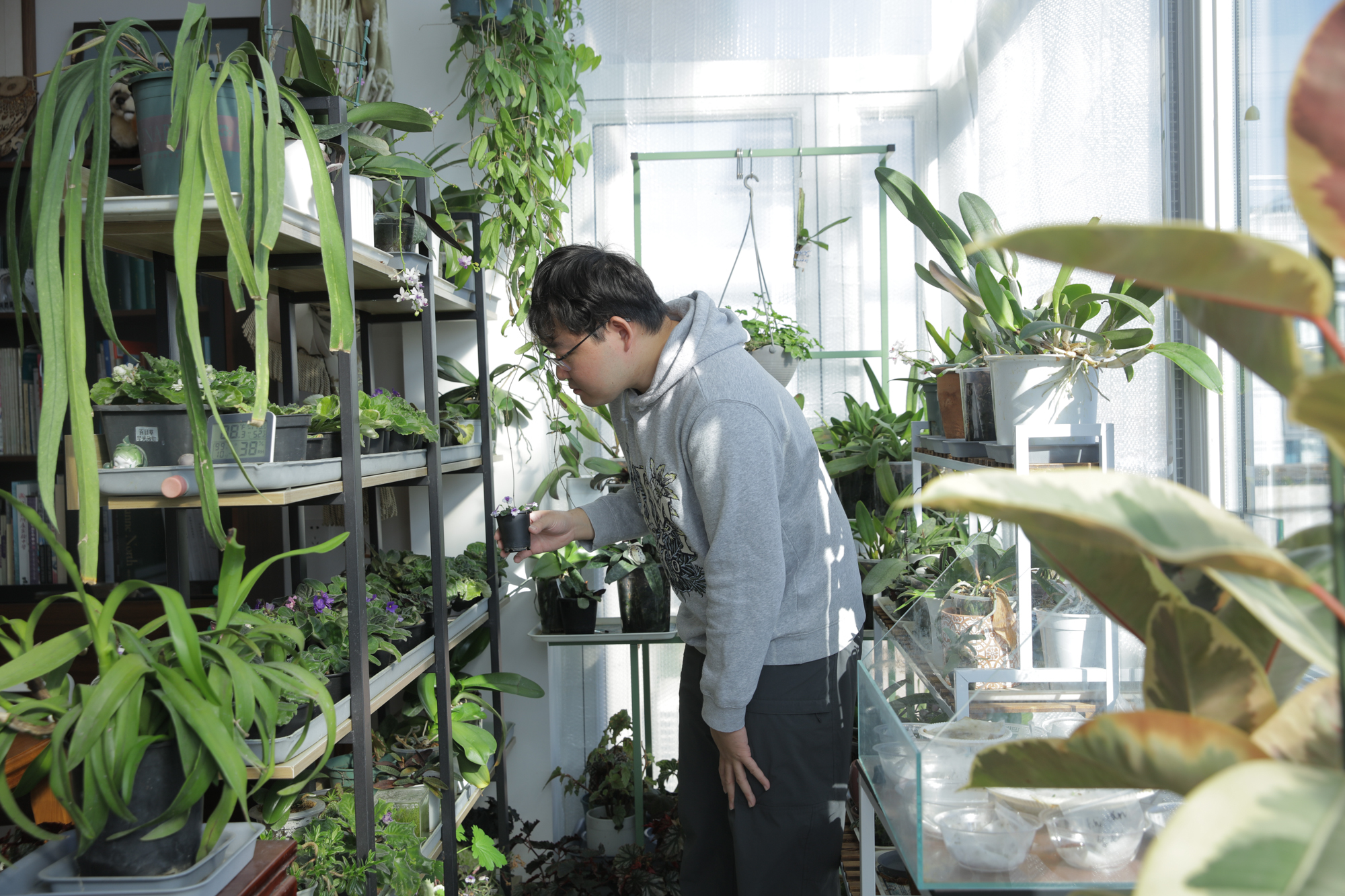 天一老师从9岁入了植物的坑,甚至因为阳台不够养,10年前,他专门从北京市区搬到昌平的村里,在家附近租了个400平方米的大棚,开始大规模种植和观察各类植物。