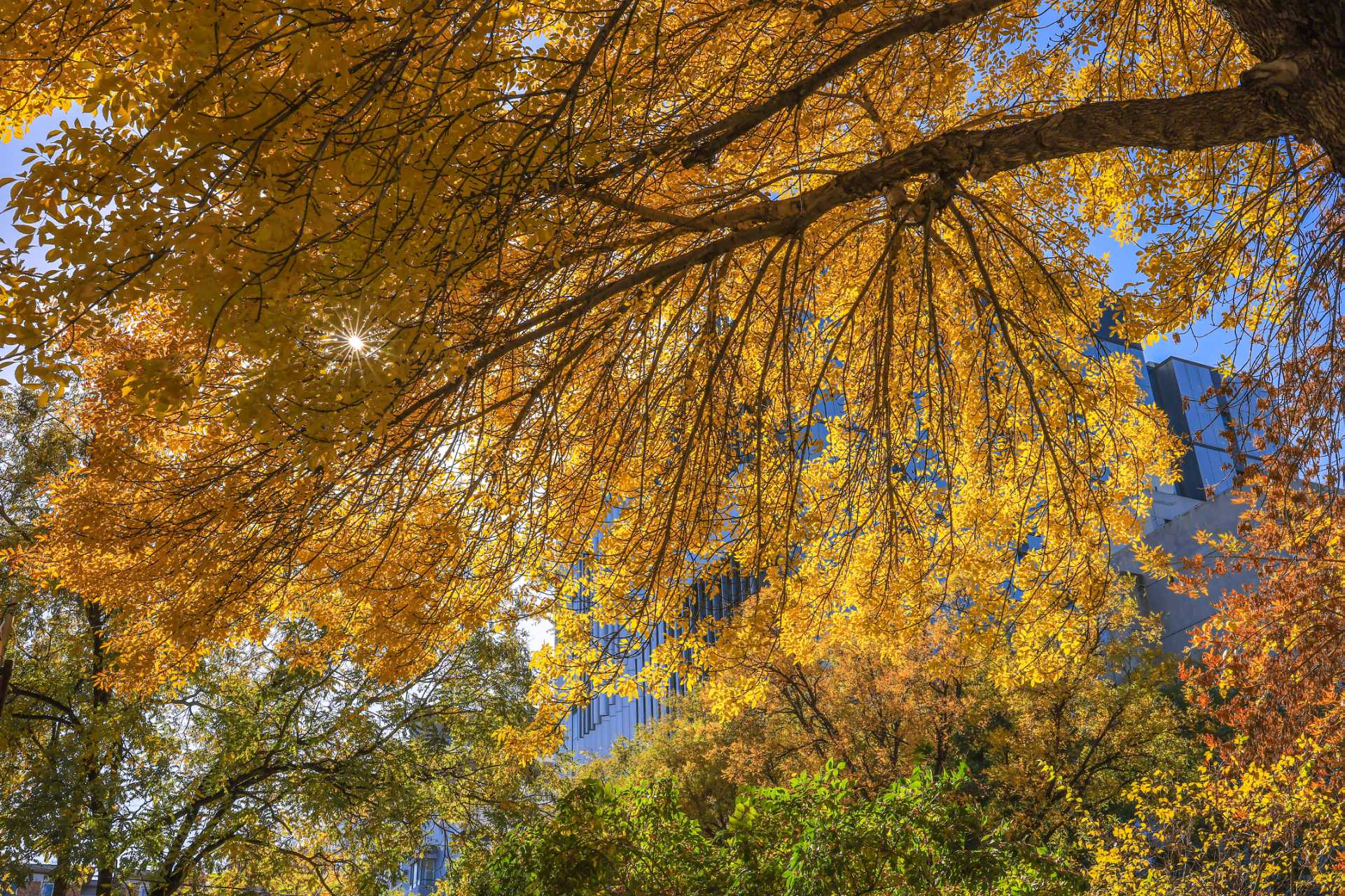 *2025年10月,余天一在北京大学拍摄的一树金黄的洋白蜡