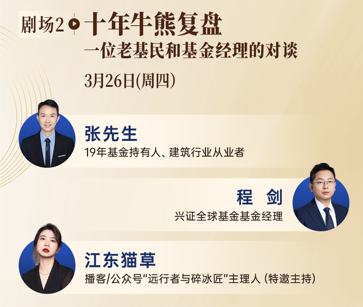 3月26日,兴证全球基金“十年之约·基民剧场”第二期节目正式上线。本期节目聚焦权益投资,由我与一位19年基金持有人张先生,以及兴证全球基金基金经理程剑进行对话,从牛熊记忆聊到投资纪律,从科技浪潮谈到主动管理的价值,探讨普通人如何通过权益投资分享时代机遇。