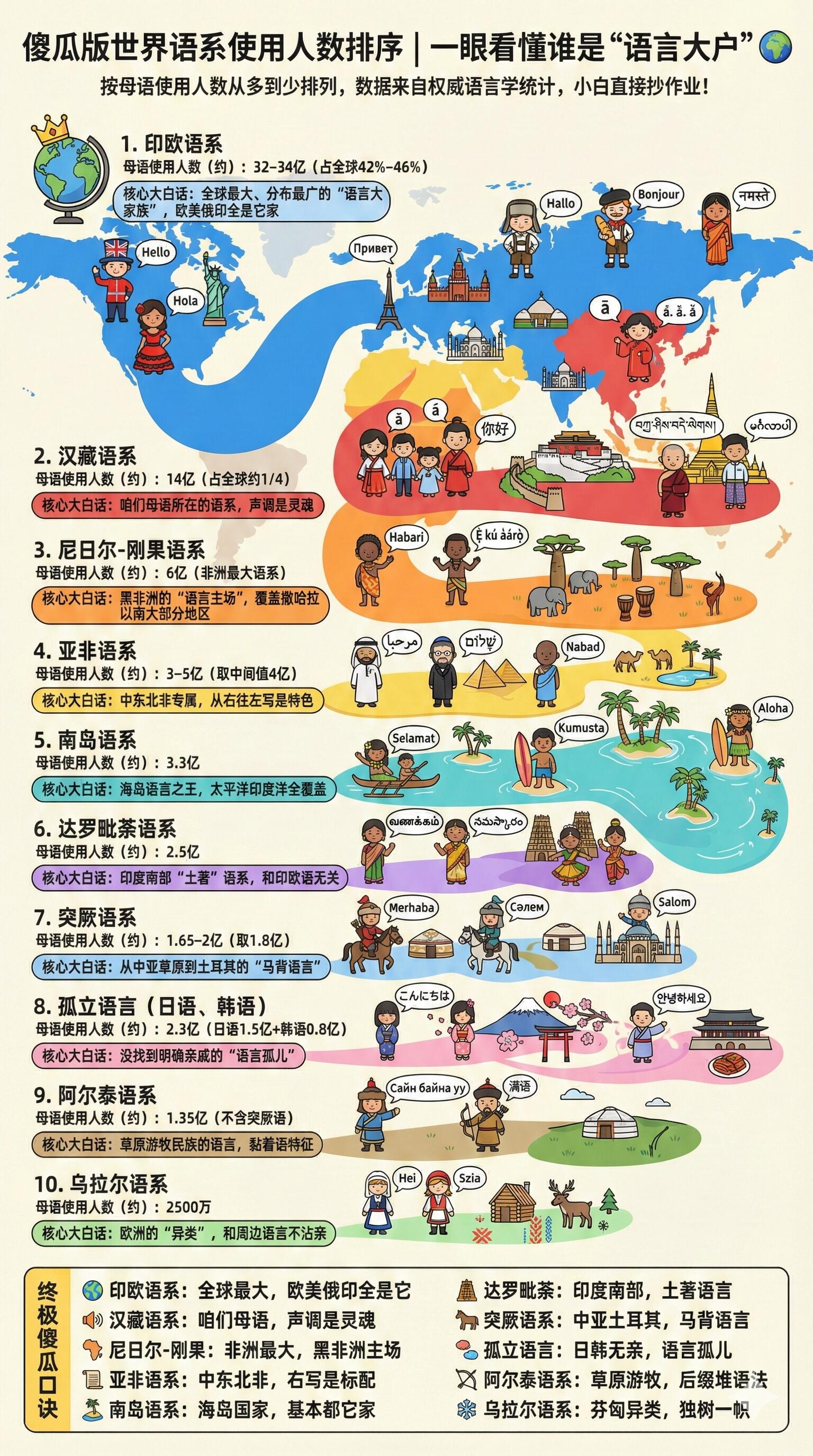 世界语系使用人口排序图 @图解万物(更年期暴躁版)