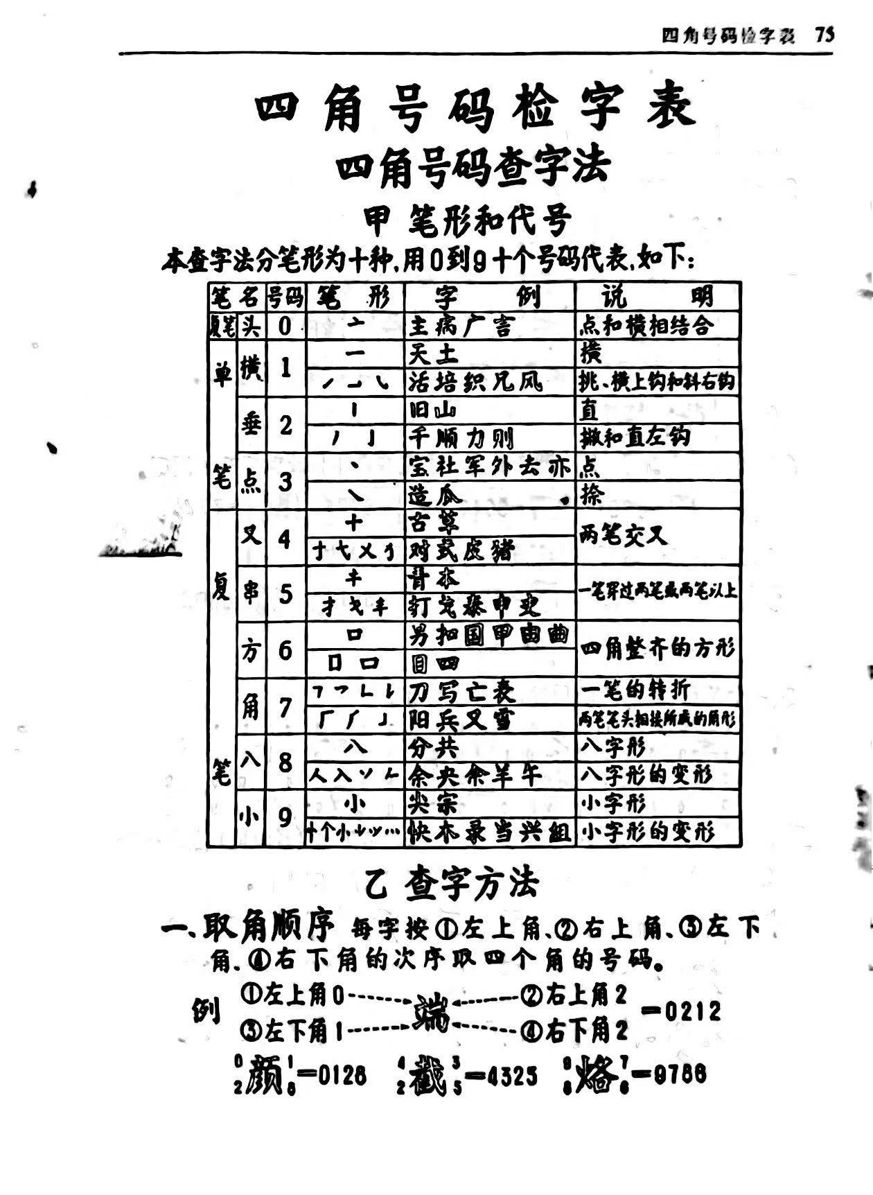 四角号码:四角号码是汉语词典常用检字方法之一,通过提取汉字四个角的笔形特征转化为0~9的数字编码,按左上、右上、左下、右下顺序生成四位主码,附加第五位附号区分重码字。该方法由王云五于1926年首次公布,其规则将笔形分为十类并用数字表示,突破书写笔顺限制。王云五自1924年起改良传统检字法,吸收电报码原理形成四角号码体系。1928年经全国教育会议通过推广后,《四角号码学生词典》等工具书陆续出版。