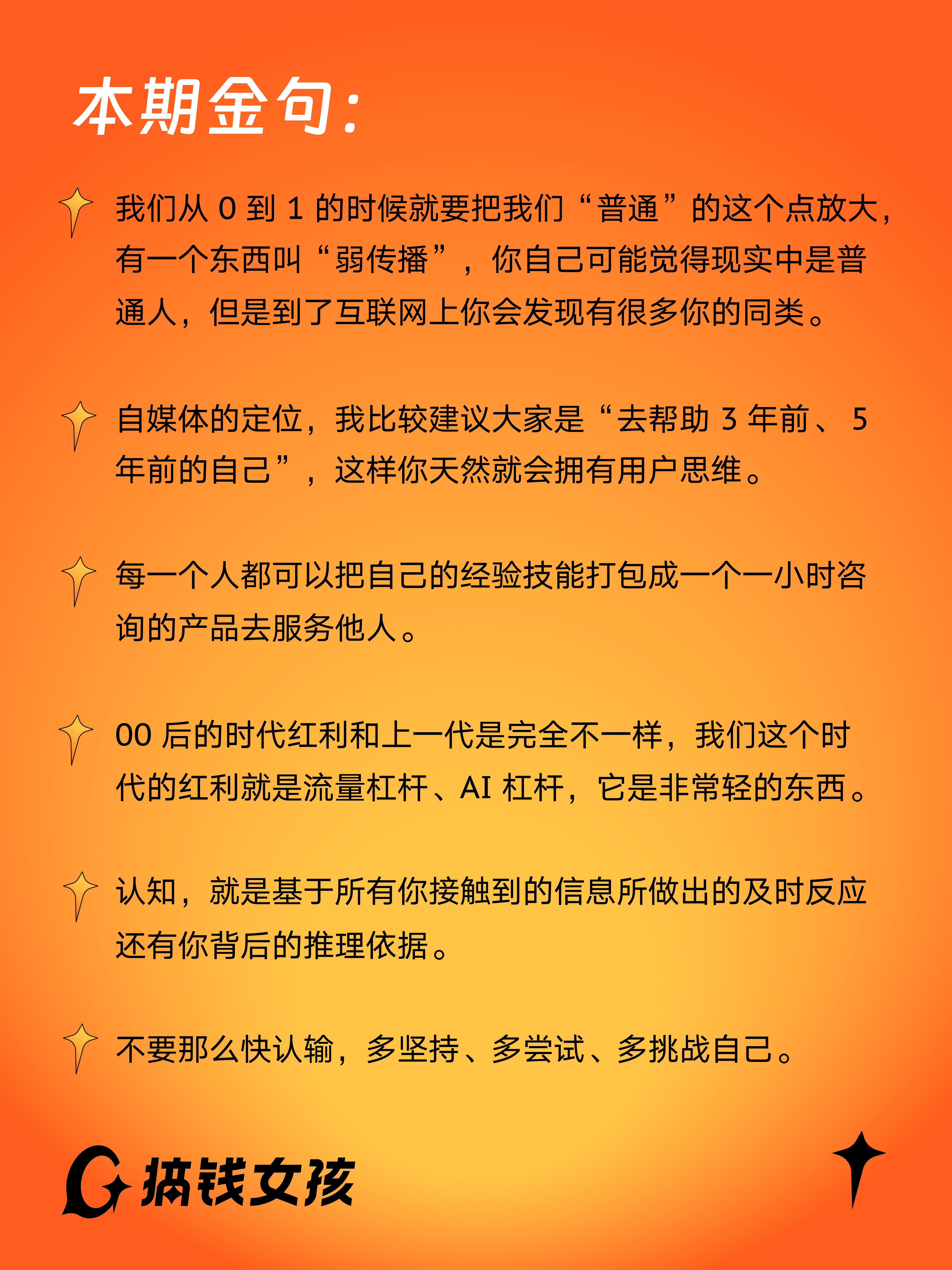 本期搞钱女孩璐璐Eva会激动地拉着你说:有!小红书+AI!这个来自内蒙的98年小镇做题家,考研三次才成功上岸,硕士期间开始创业,跑通13种小生意后发现——自媒体和AI才是离普通人最近的时代红利。