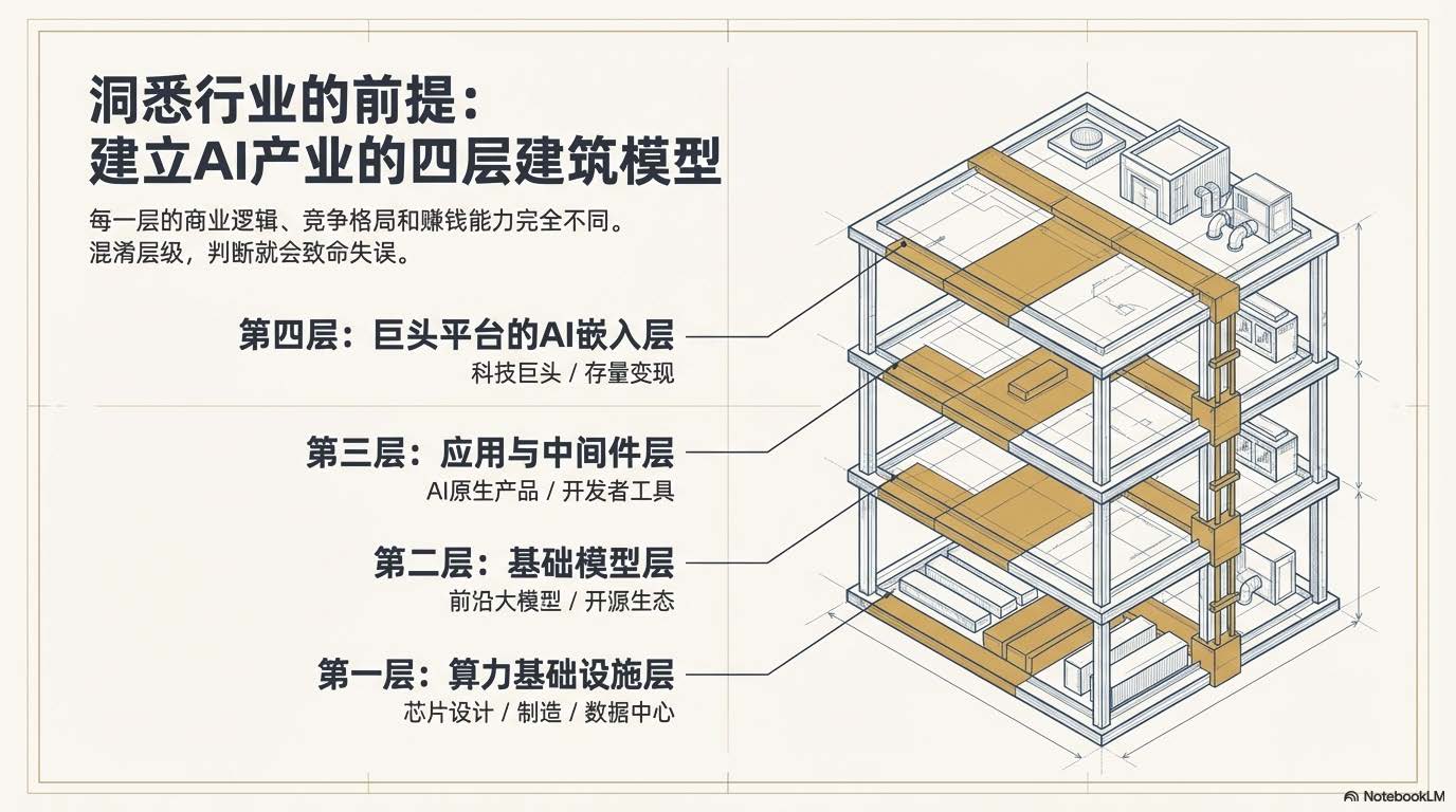 - 算力地基、模型发电厂、应用电器商与巨头房东,看懂行业的前提是你得知道你在看哪一层 。