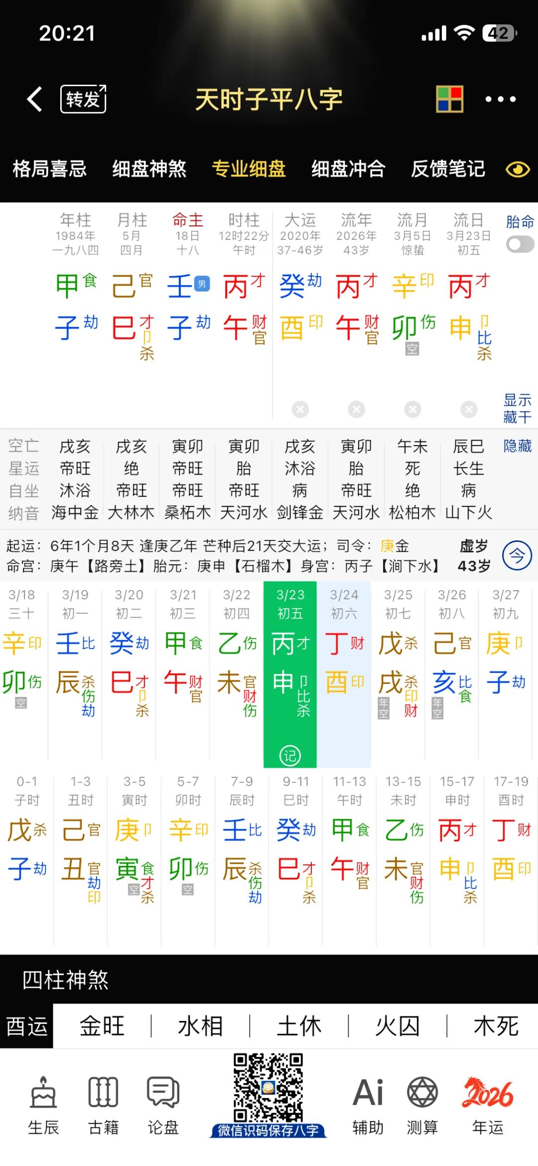 2026年3月23日,出事,流年和流日都是丙火,丙火被克,壬辰时出事可能性最大