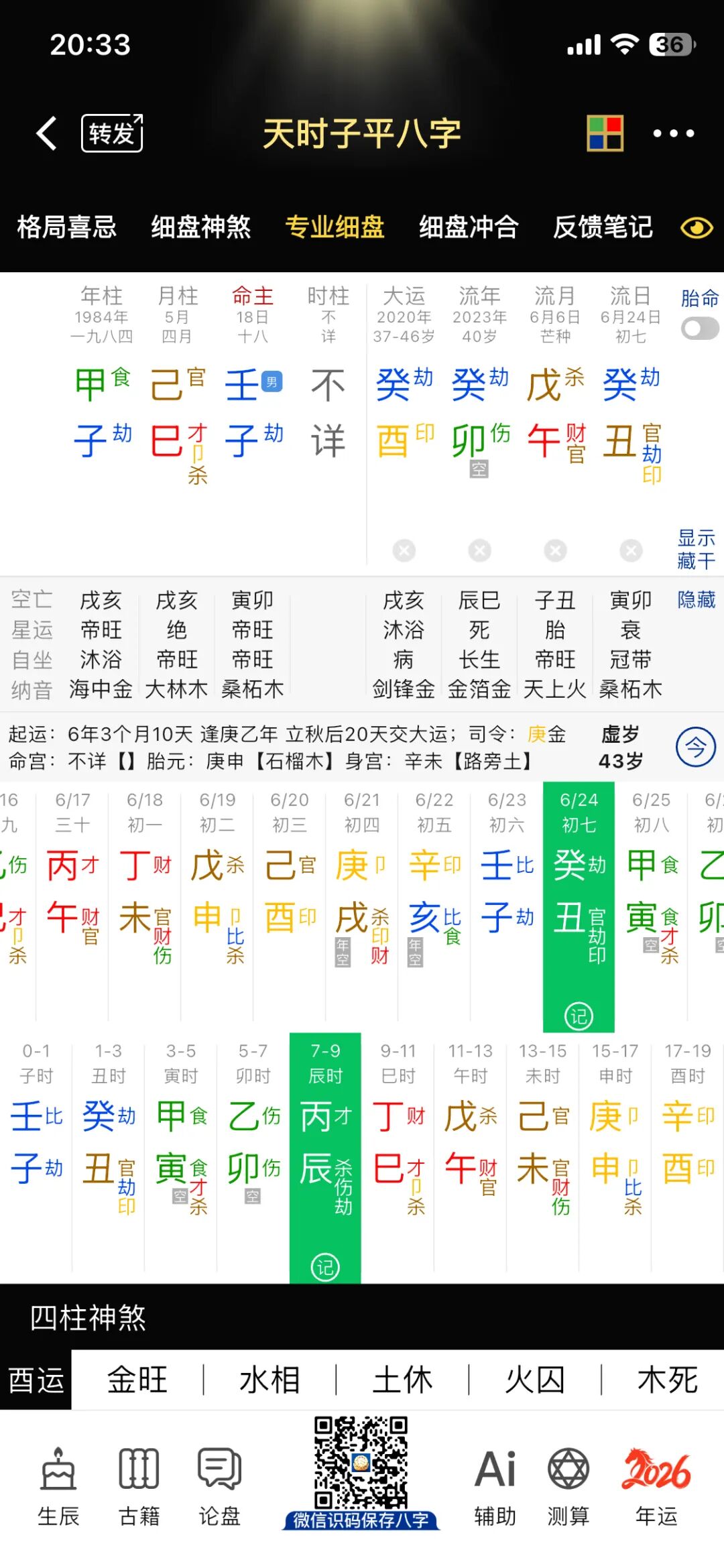 流年应期:2023年及2024年6月23日,流年大运中克制水的土被合走,导致水无制而猛烈克火,引发心脏问题并最终导致猝死。