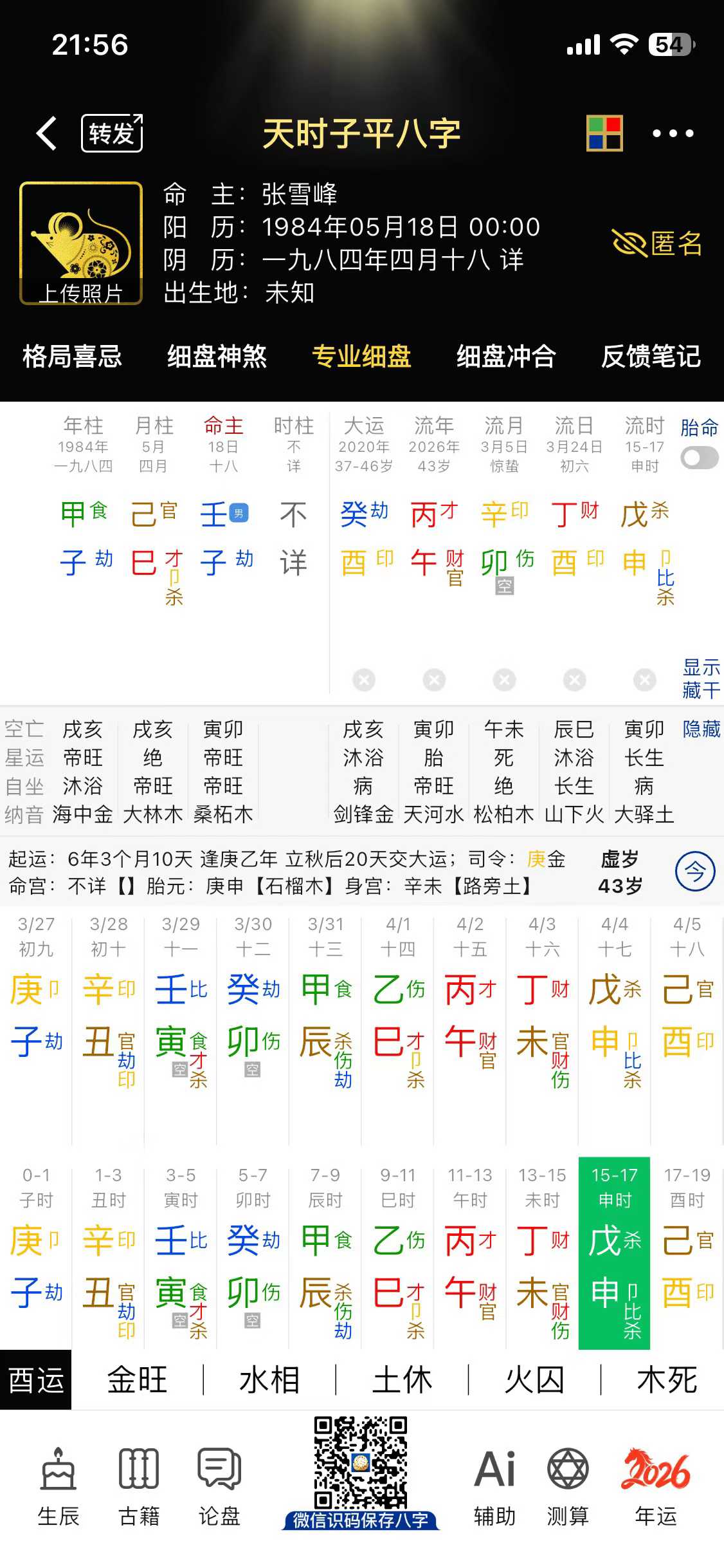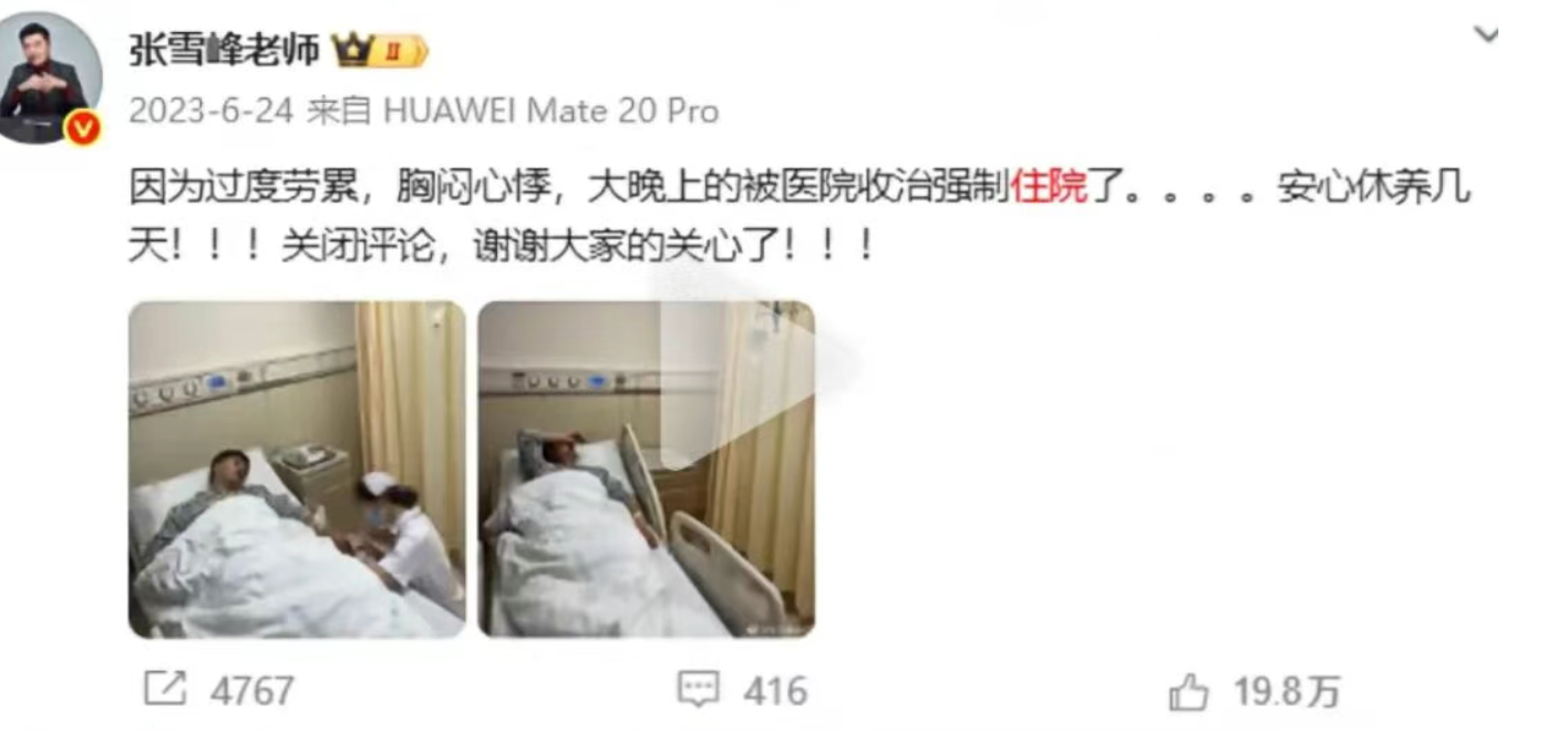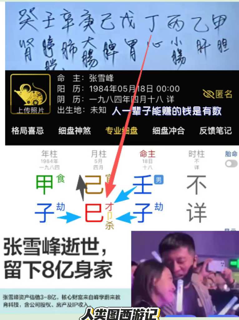 花有缺通过分析张雪峰的八字格局,揭示了其生命轨迹与健康危机的命理根源:
