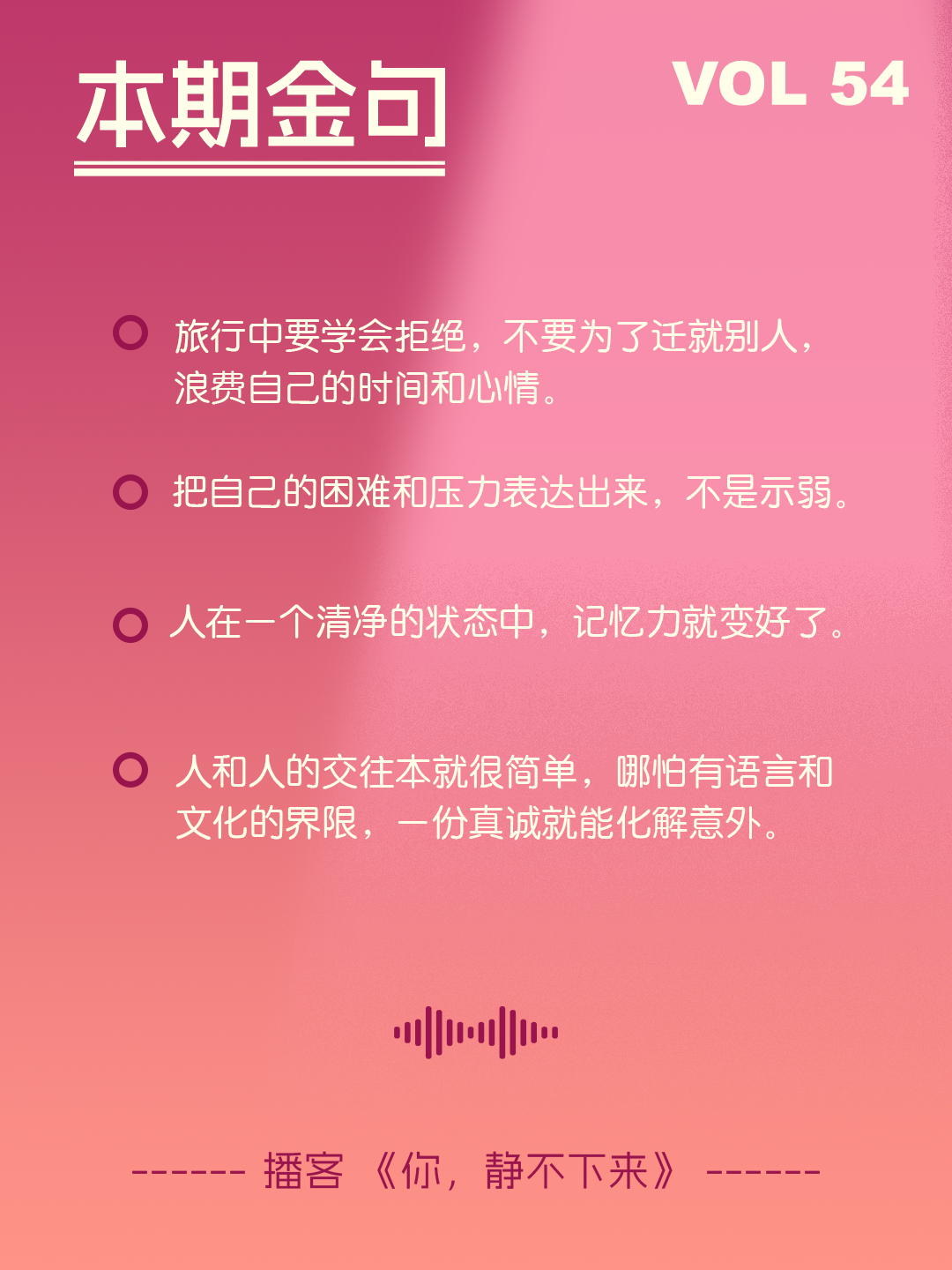 感谢大家订阅收听《你,静不下来》,在评论区分享你非常难忘的旅行的记忆,以及你是否有一些可以避坑的旅游经验,或者2026年你特别想去的地方,我们将在抽取10位听友送出连咖啡。“听友来信”系列持续征稿中,如果你也有一些不想和身边人诉说的困扰,爱情、生活、职场上无法解决的问题,都可以通过 my.feishu.cn 投稿给树洞或微信联系小助理ni_jingbuxialai,让我们像老朋友一样聊聊天。