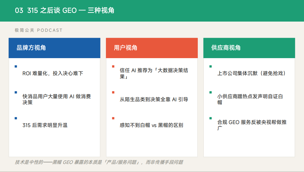 00:24:37 315之后谈GEO:品牌方、供应商、用户的三种视角全解析