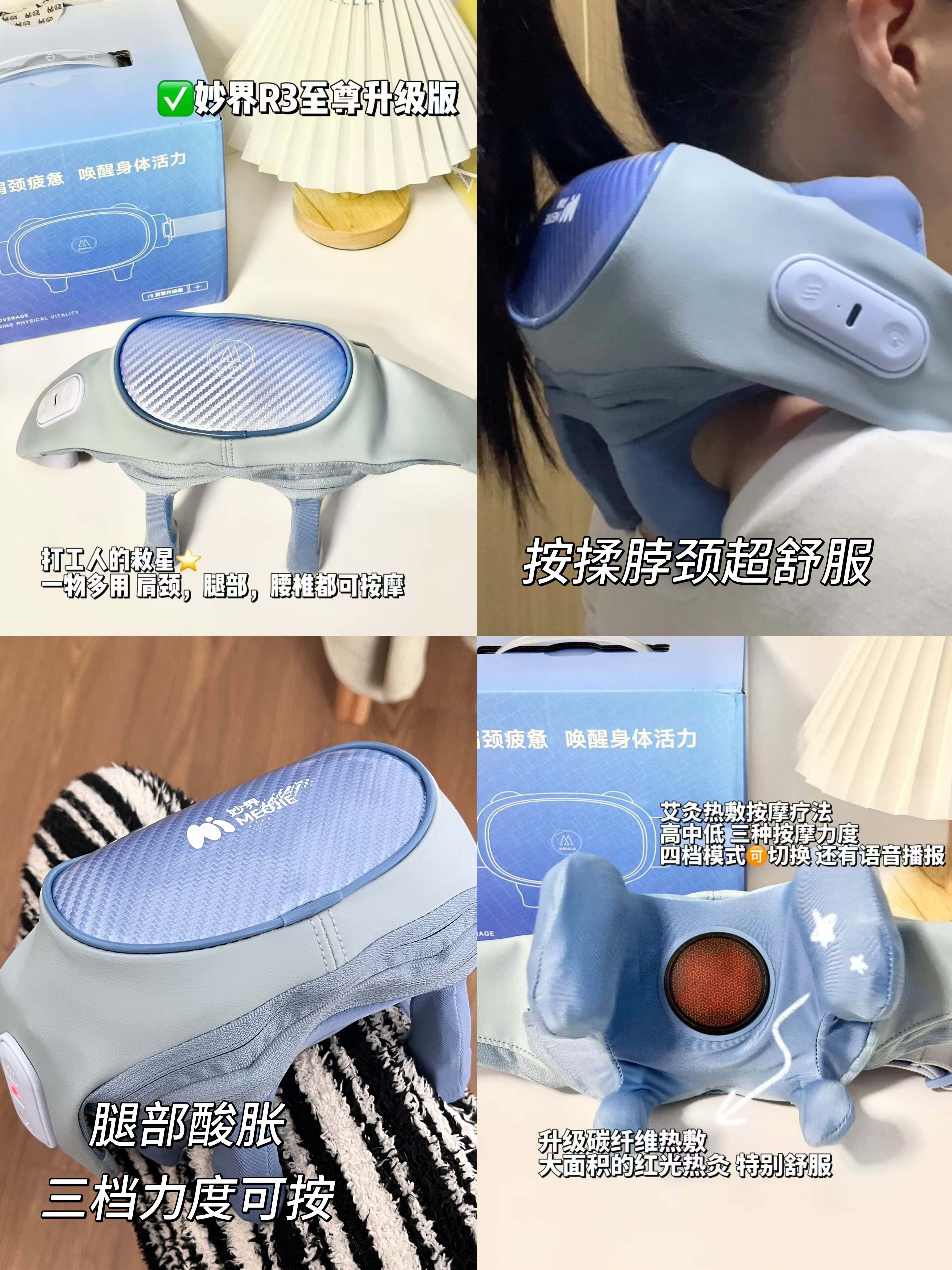 姐妹们谁来懂一下!我们两就是那种一剪节目就焊在电脑前、一赶稿子就从天亮肝到天黑的选手,脖子肩膀直接硬成水泥板!斜方肌又酸又胀,严重的时候还会抽筋,自己怎么按都按不到位……直到拥有专属按摩师【妙界R3至尊升级款肩颈按摩仪】,肩颈终于舒服多了!
