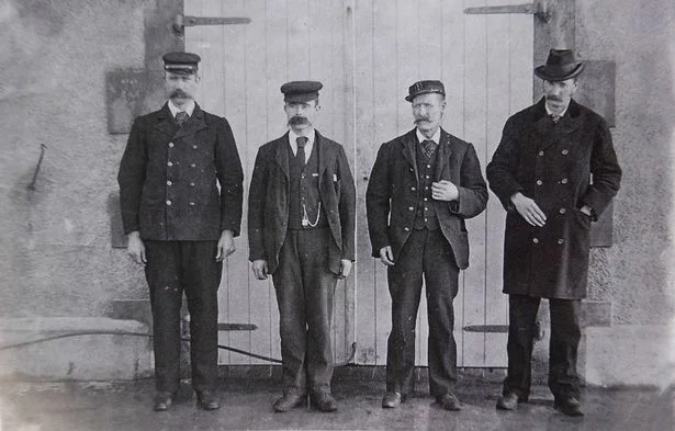 从左到右分别为:主看守人,詹姆斯·杜卡特;第一助理,托马斯·马歇尔;临时看守人,唐纳德·麦克阿瑟;灯塔管理局人员