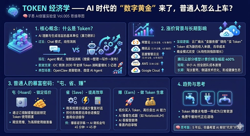阿里云、腾讯云、百度云等厂商相继调价,背后是云厂商从“卖服务器”转向“卖Token”的商业模式变革。 - 普通人机会:屯、省、赚