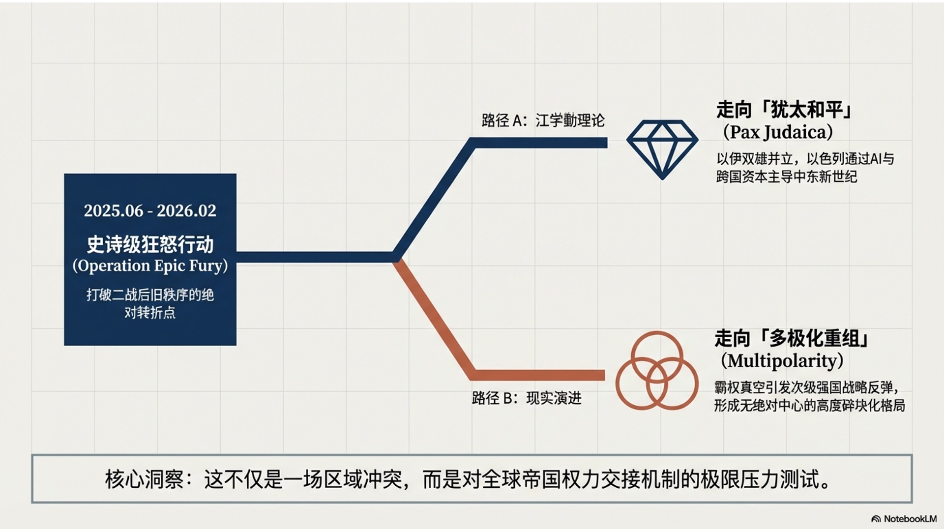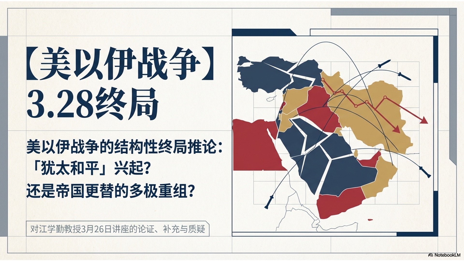本期节目深度聚焦2025至2026年“美以伊战争”的结构性终局,探讨这场重塑全球权力格局的冲突究竟会导向以色列主导的“犹太和平”,还是帝国更替下的碎片化多极重组。