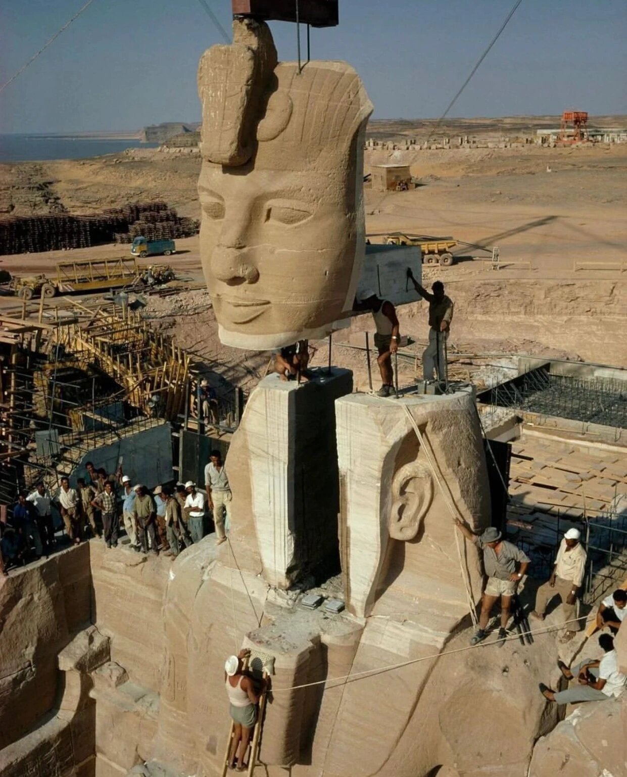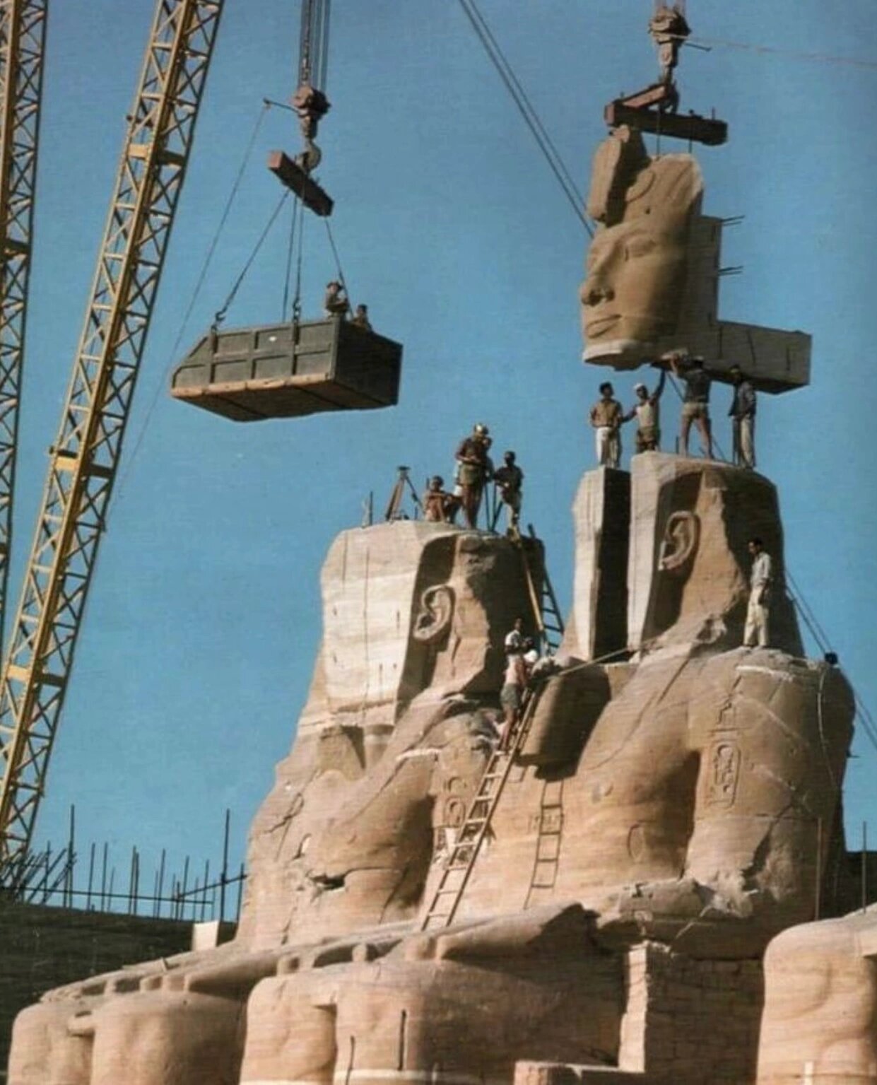 1960年代,因修建阿斯旺水坝,神庙面临被淹没的危机,搬迁到高出原址 60 多米、远离河岸 180 米的新址。
