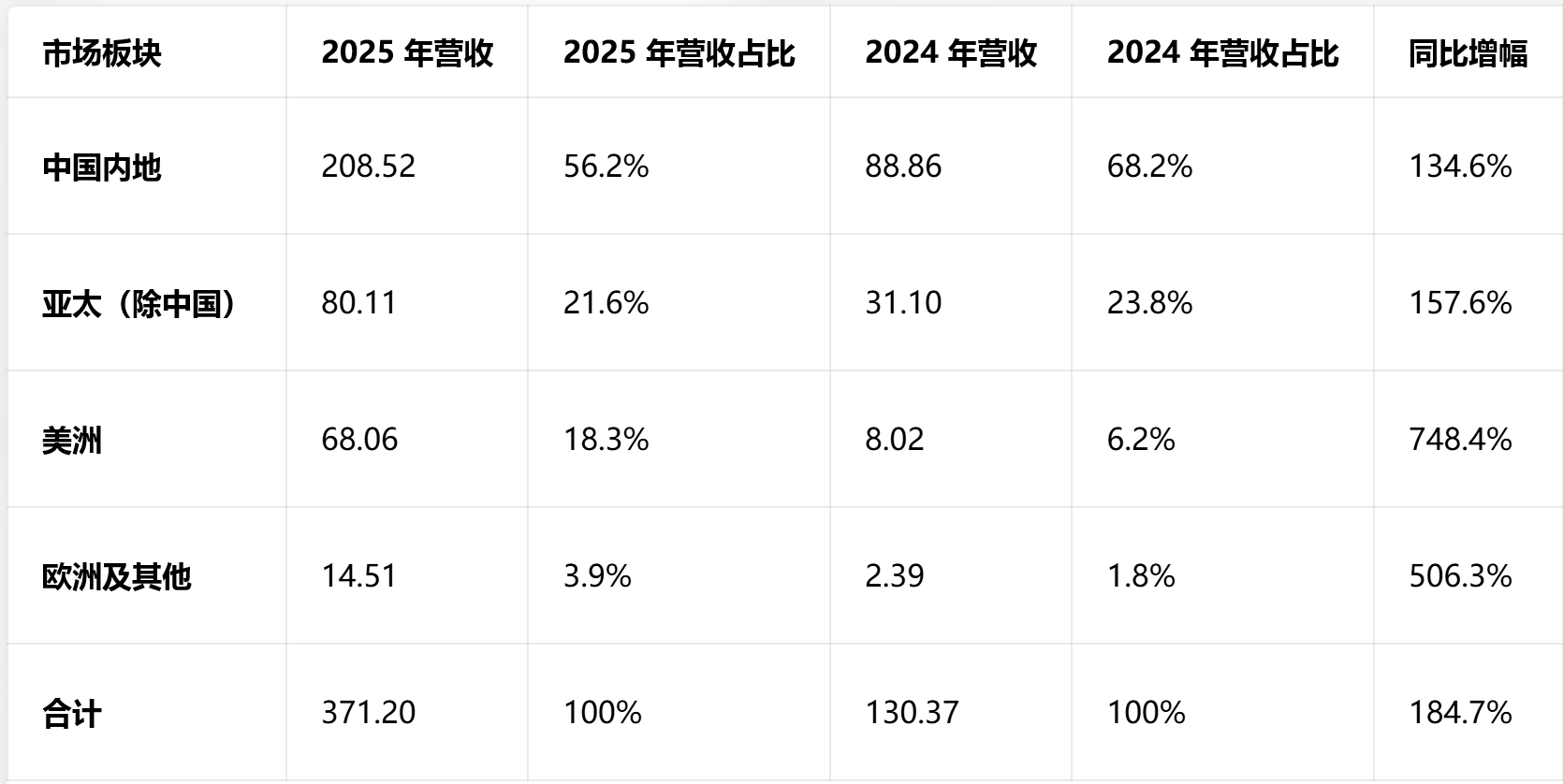 泡泡玛特 2025 年 vs2024 年各市场营收拆解