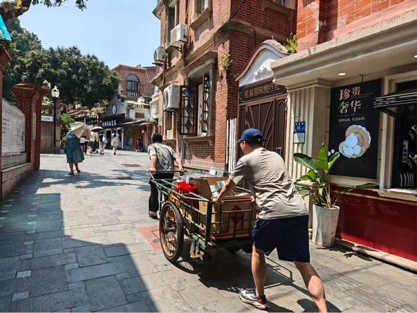 鼓浪屿的其中一条小路,游人如织,南腔北调,热闹非凡。这条小路隔开马约翰体育场与中山图书馆,「野蛮其体魄」大而易见,「文明其精神」安安静静。