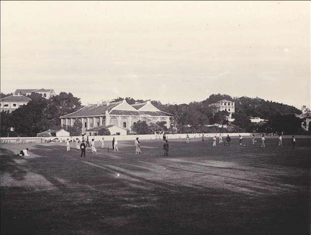 △20世纪初,从鼓浪屿体育场看海关俱乐部,1963年中山图书馆迁入此地,1993年拆除原建并建成新馆
