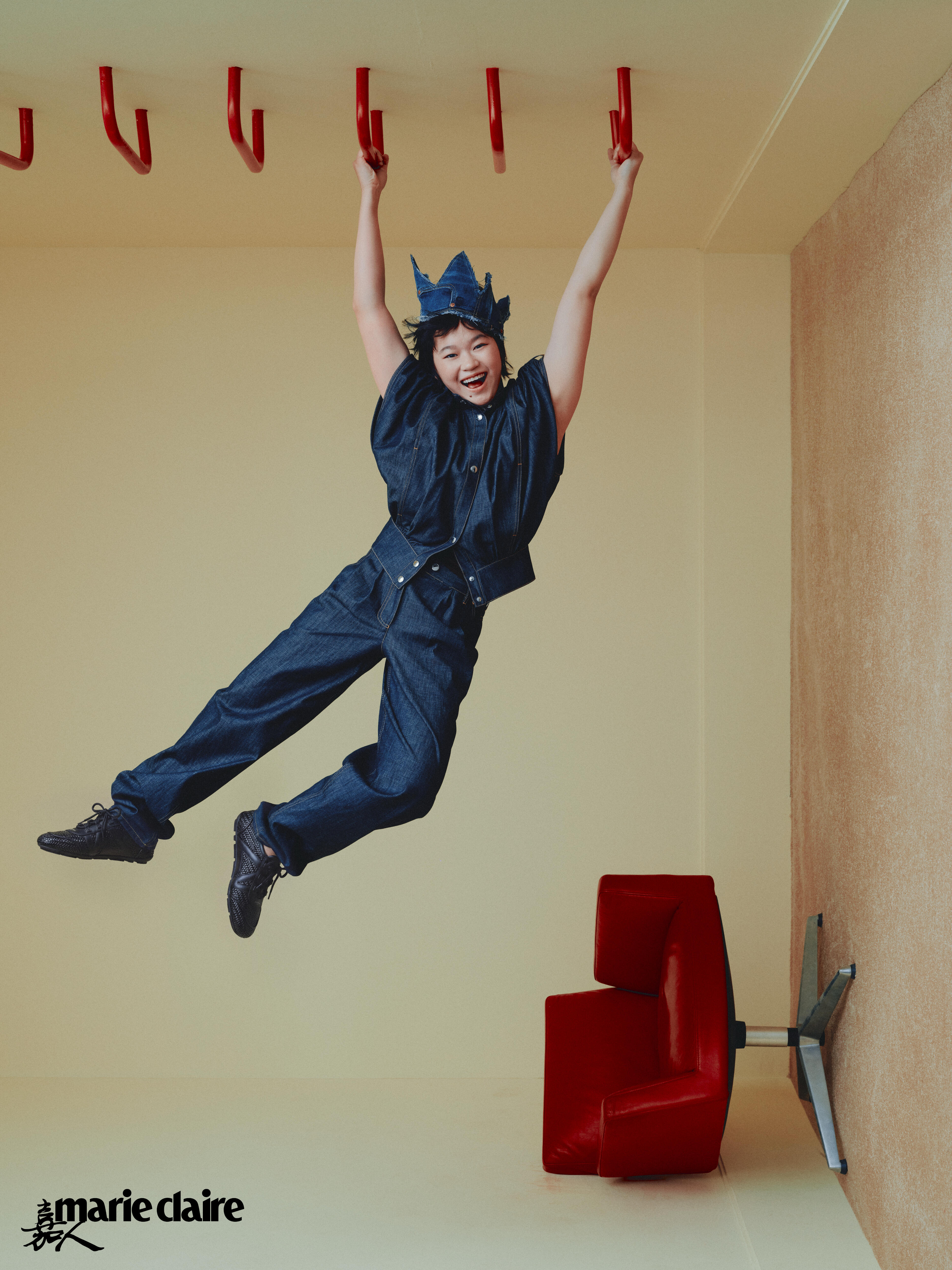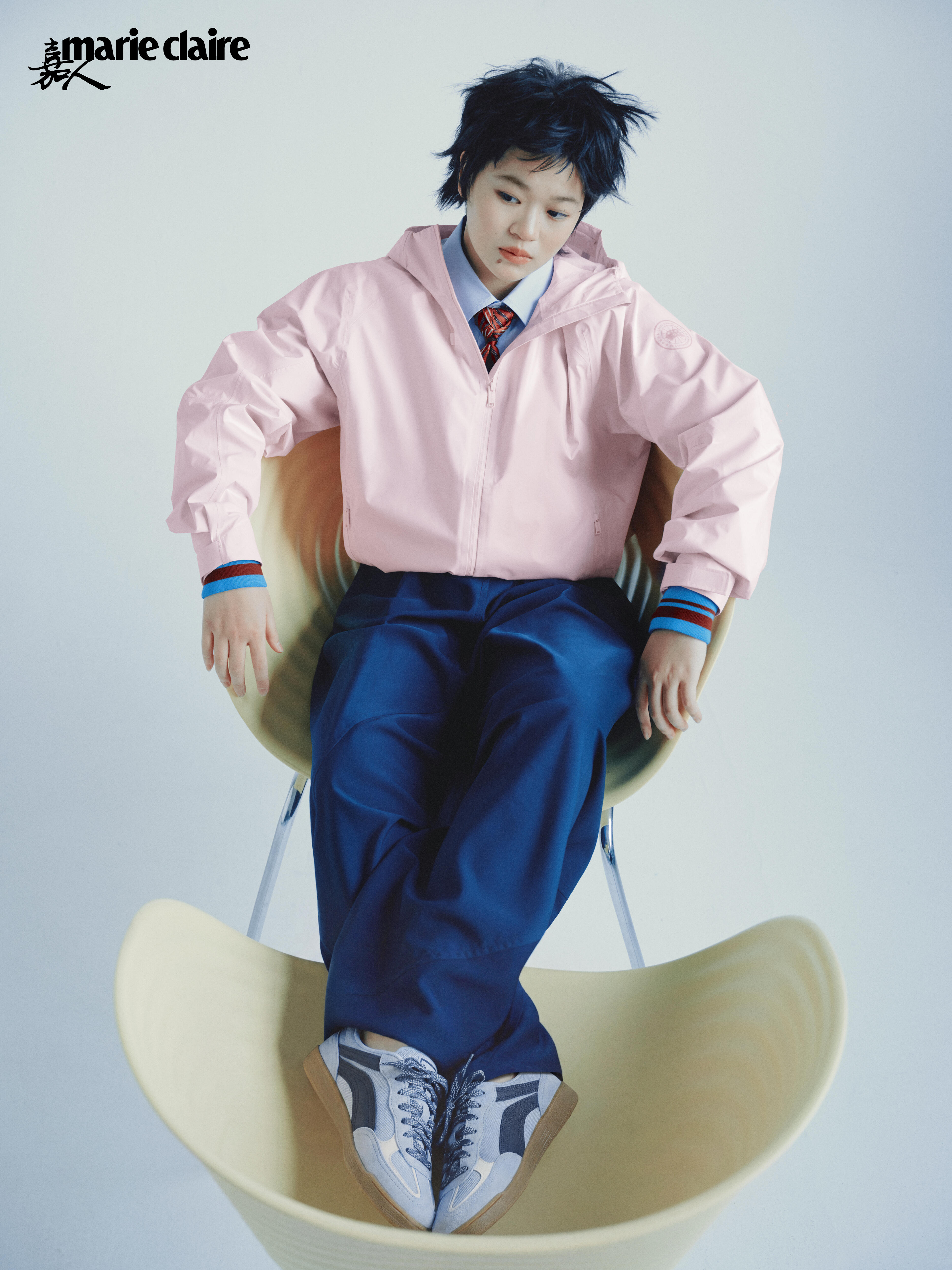 首先看构图,这组照片特别会藏细节。摄影师用了很多圆形框架、极简留白,把她跳水时舒展、腾空的感觉,悄悄融进时尚造型里。不刻意强调运动员身份,却处处都有呼应,高级又有故事感。