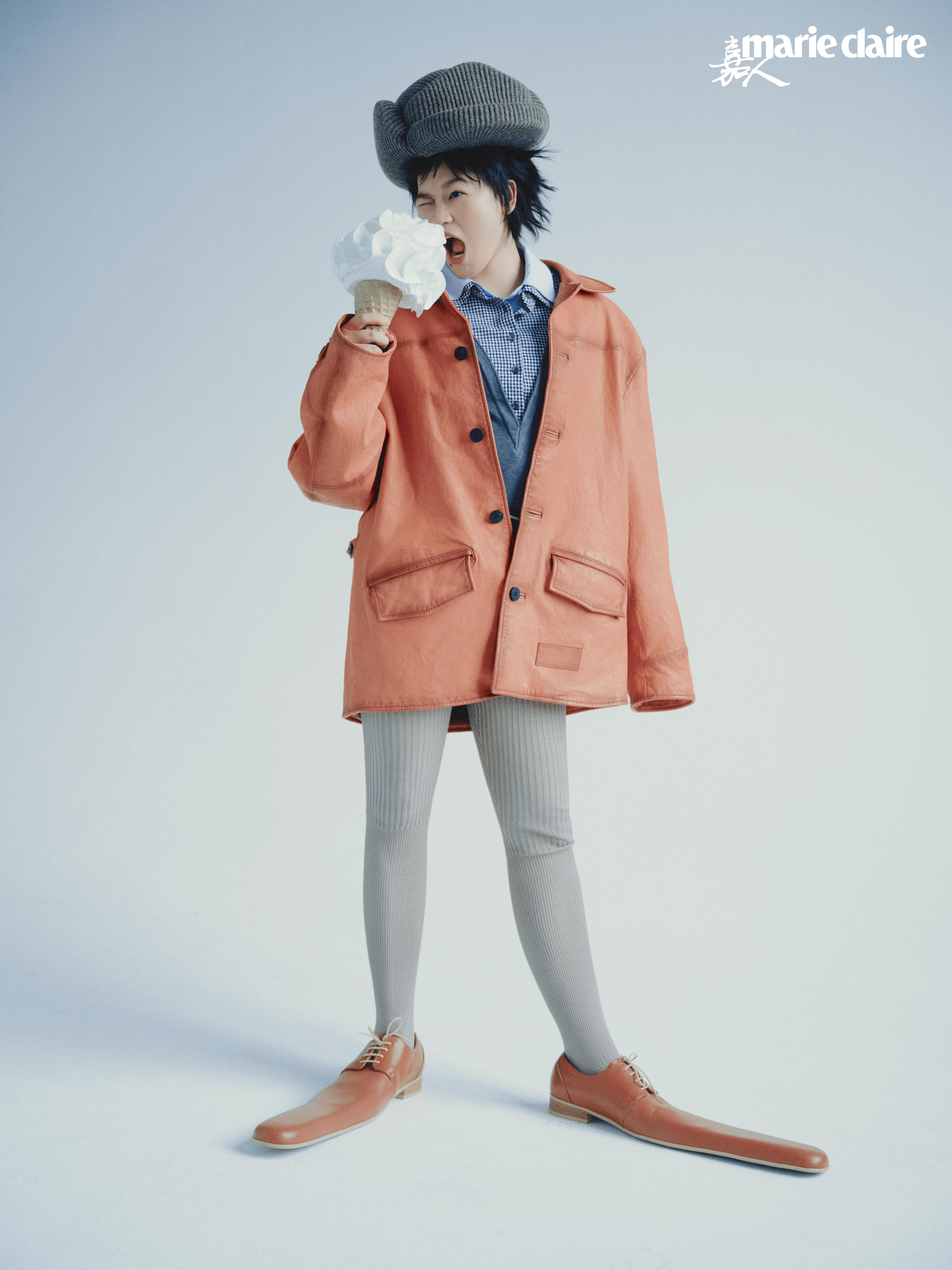 再来看光线,整张照片用的全是柔和的自然光,没有刺眼的硬光,也没有浓重的阴影。把皮肤质感拍得特别通透,连一些小瑕疵都保留了下来,真实又鲜活——这就是《嘉人》最厉害的地方:不追求“完美假面”,而是拍出“鲜明性格的人”。