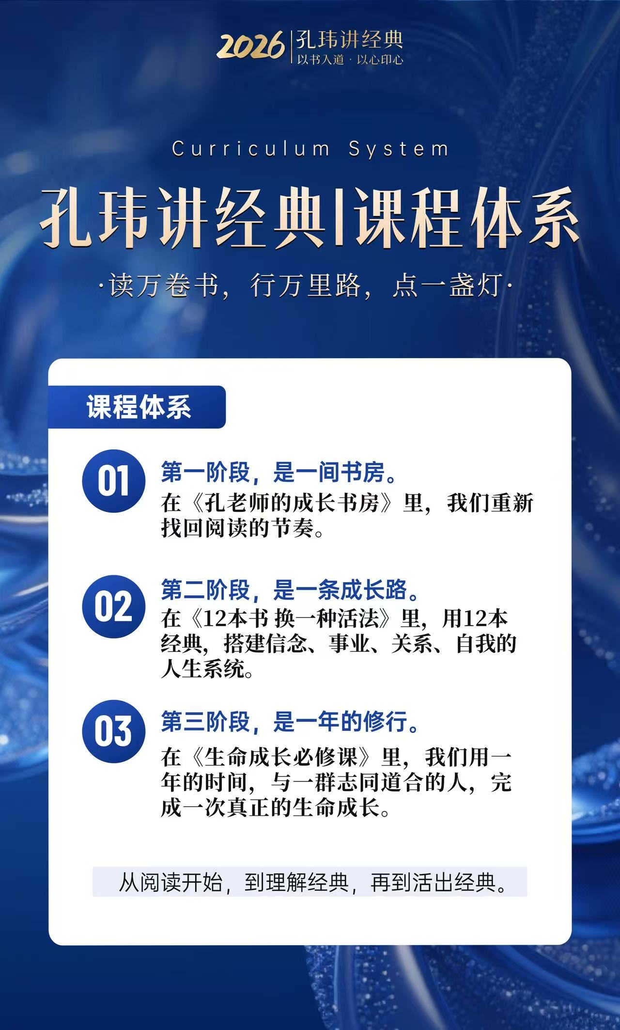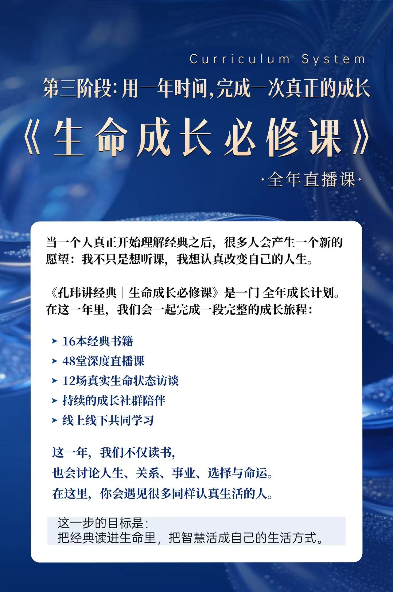 在「孔玮讲经典」的体系里,我们始终在做一件事:为真正想成长的人,搭建一条清晰的路。
