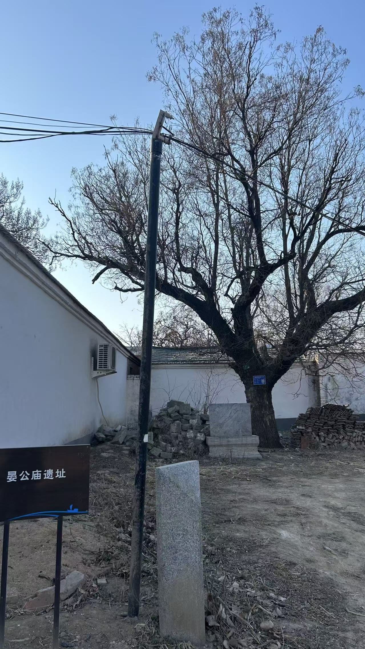 暮色中的晏公庙遗址大槐树。