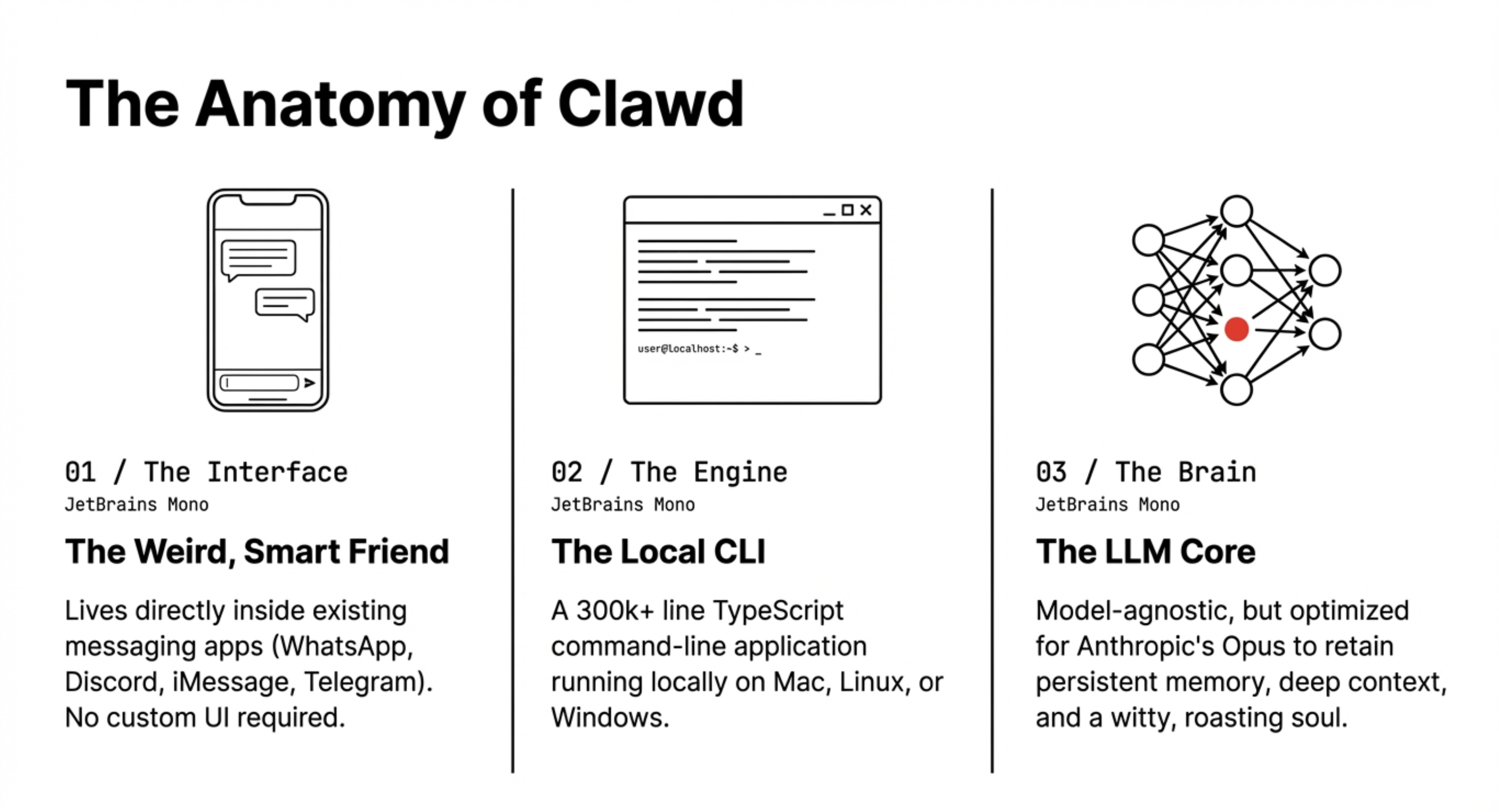 - 无处不在的入口:OpenClaw 运行在你的电脑上,通过 WhatsApp、Telegram、iMessage 等即时通讯软件与你交互。发条消息,它就能操控电脑——读取文件、管理日历、控制智能家居,甚至帮你在线值机。