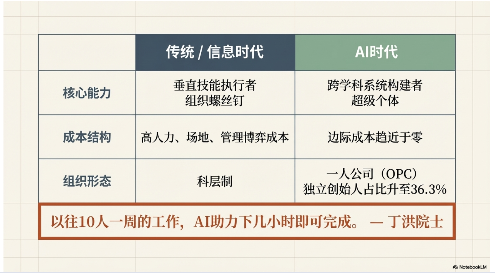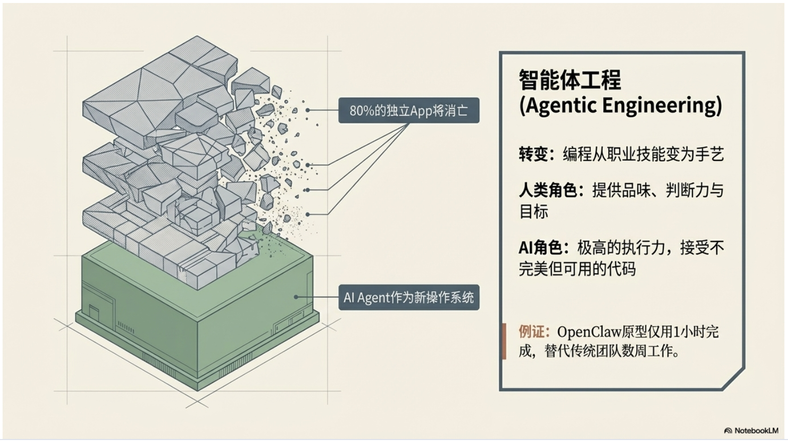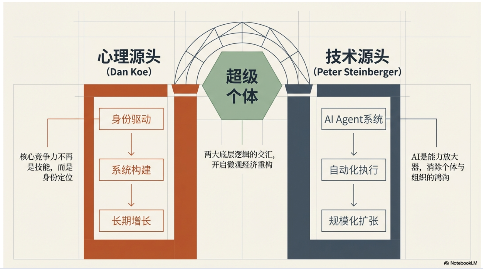 本期节目结合油管大神和超级个体 Dan Koe火爆全网的文章《如何在一天内重启人生》和“龙虾之父”Peter Steinberger 近日接受播客访谈时提出的人机协作见解和“玩耍”哲学,指出 AI 已成为个体的能力放大器,单打独斗也能具备传统组织的竞争力。未来的核心竞争力将从技能熟练度转向问题定义与系统整合能力。通过将工作游戏化并保持自主性,个体可以从组织的附属品转变为独立的价值创造者。最终,这种模式不仅降低了创业门槛,更促使商业伦理回归以价值为本的初衷。