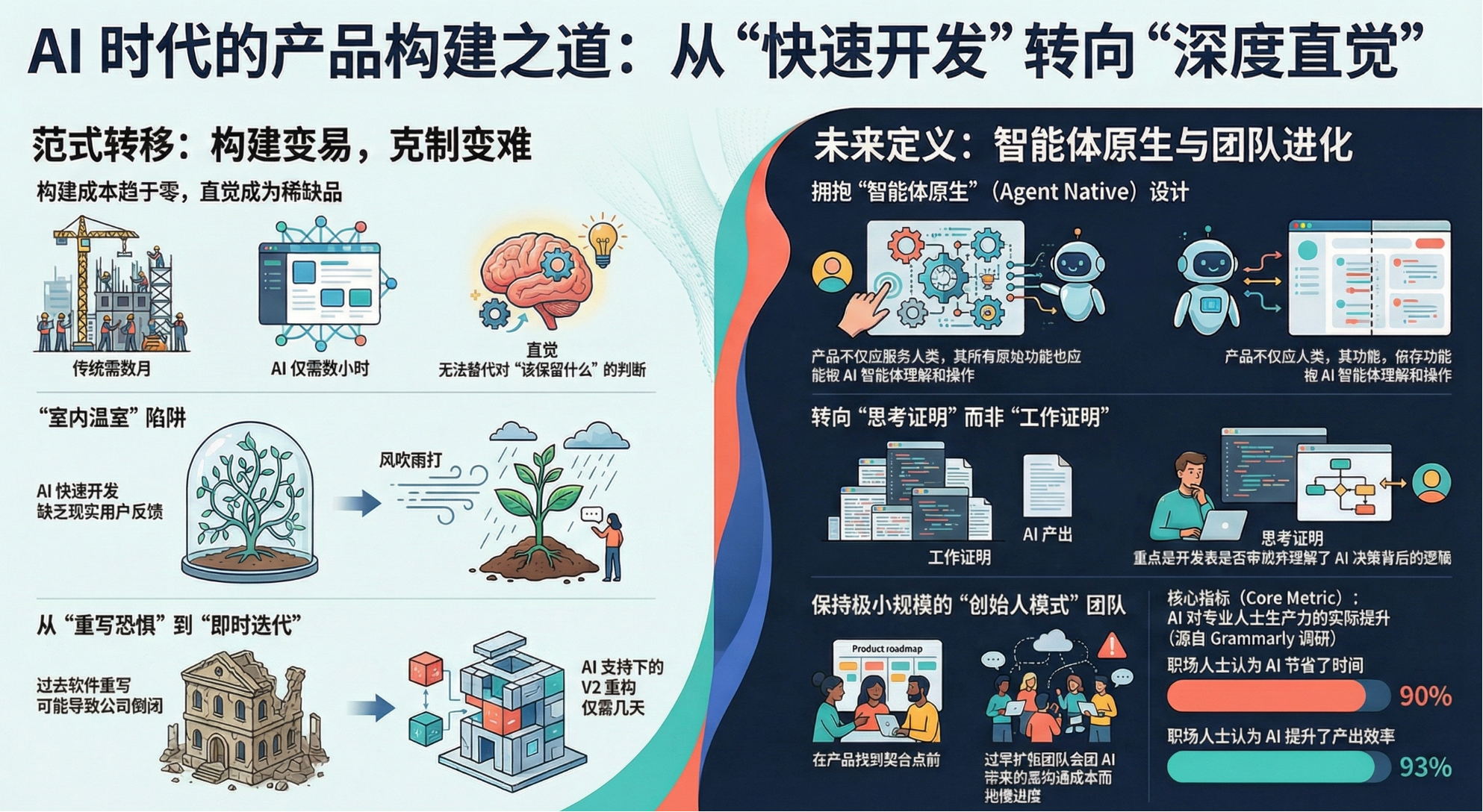 作为Instagram的联合创始人,Mike Krieger曾亲历从0到1的艰难创业;如今在AI前沿公司Anthropic,他见证了AI如何将数月的工作压缩到几小时。他分享了一个生动的“室内树”比喻:过度依赖AI快速开发,产品虽能快速成型却缺乏韧性。当AI能在两小时内重构他当年的应用时,Mike深刻意识到,真正的挑战已从“构建”转向了如何培养产品直觉,以及懂得删减的艺术。