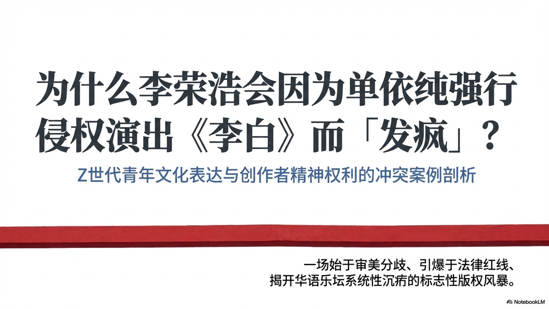 本期节目深度复盘了2026年3月华语乐坛的一场重大版权争议:新生代歌手单依纯在明确被拒的情况下,于深圳商业巡演中“强行侵权演唱”李荣浩的代表作《李白》。