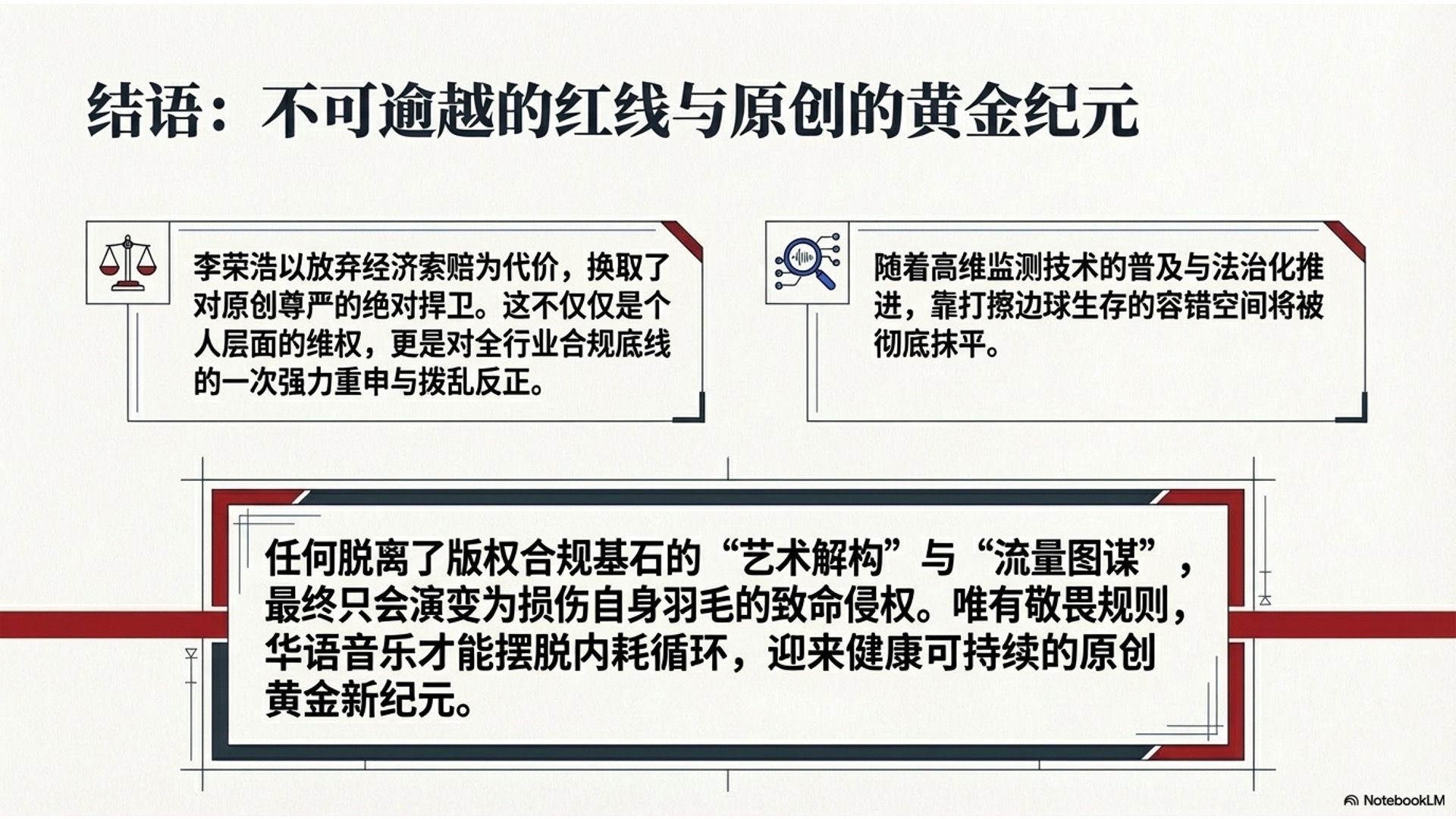 面对侵权,李荣浩果断拒绝经济赔偿,以“降维打击”的态度强硬捍卫了版权尊严与程序正义。节目同时引入词作者吴向飞的历史侵权反向指控,透视了华语乐坛长期的确权乱象与权责脱节难题。本期内容不仅是对Z世代文化表达与创作者权益冲突的深刻剖析,更呼吁全行业借助AI与区块链等新技术,彻底摒弃侥幸心理,重塑“先授权,后使用”的严明铁律。