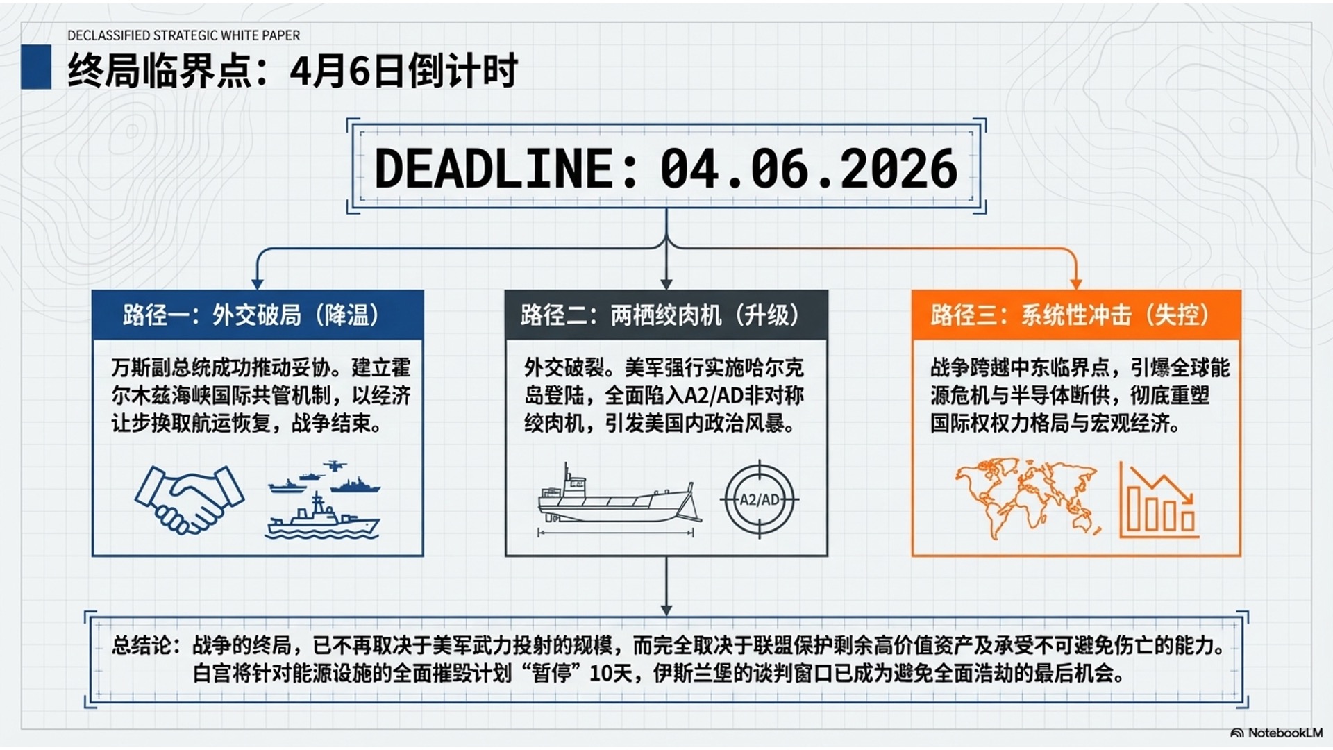 随着战局陷入消耗泥潭,美国抛出的15点和平方案遭伊方拒绝,代表反战派的副总统万斯正借道巴基斯坦展开秘密斡旋。本期节目深刻揭示:是走向各退一步的外交妥协,还是引爆一场重塑全球格局的毁灭性消耗战,历史已来到最危险的十字路口。