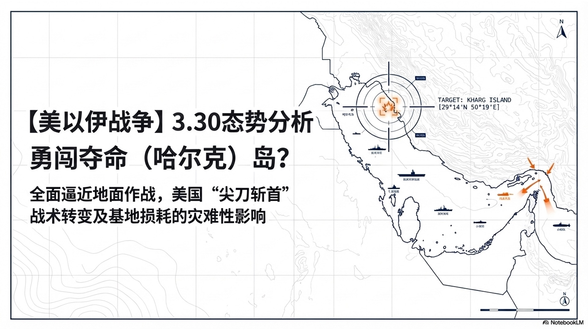 本期节目深度解析了2026年3月底“美以伊战争”的重大战术转折,全景推演美军为何从大规模空袭被迫转向以夺取哈尔克岛为核心的“尖刀斩首”地面行动。