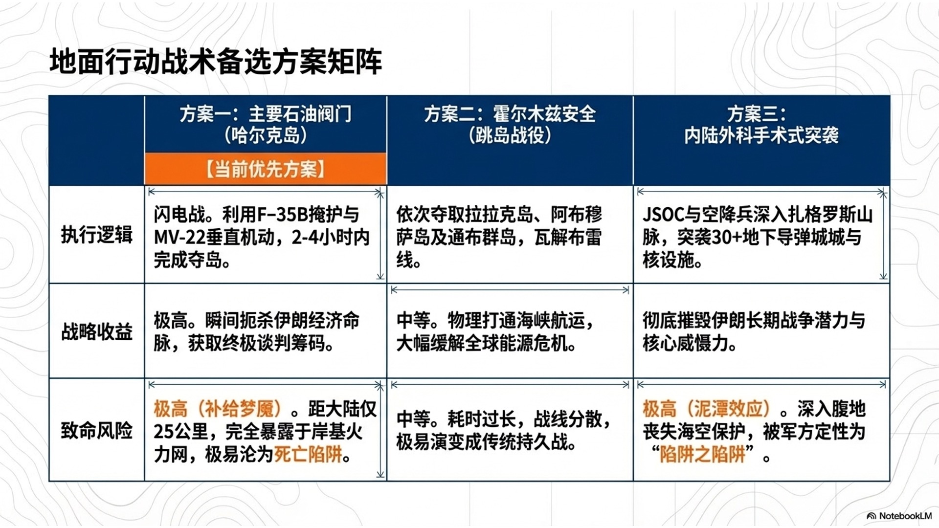 15:45 夺岛与突袭的三大方案:深度推演闪击哈尔克岛、霍尔木兹跳岛战及深入内陆突袭所面临的高危后勤与军事陷阱