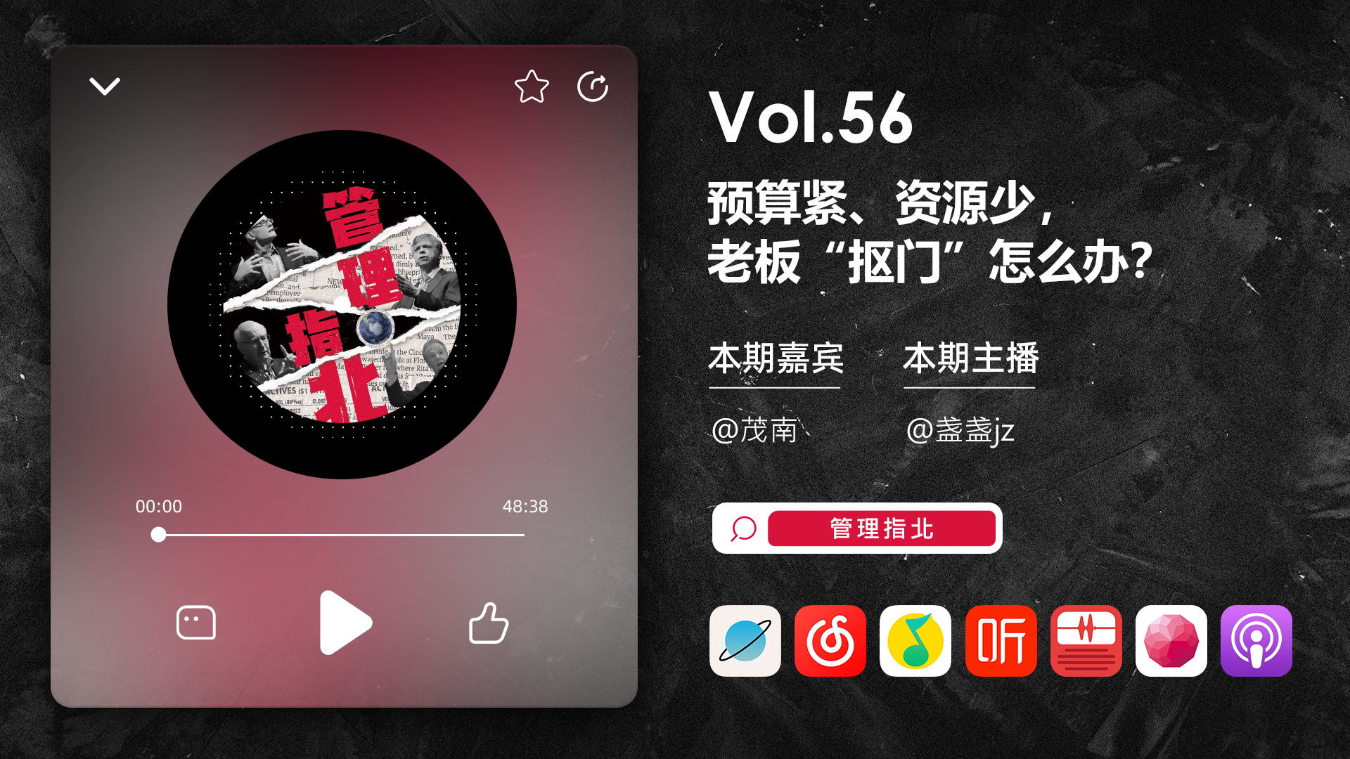 《管理指北》是一档唠「管理」话题的泛职场播客节目。让我们共话那些「管理」的阵痛与高光。每两周周一晚更新,欢迎你的订阅~
