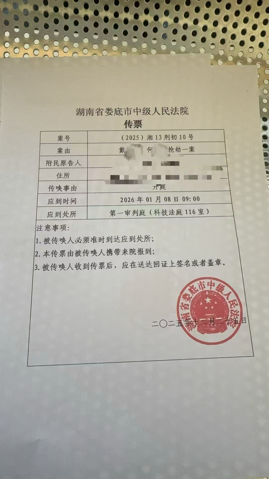 法院给嫌疑人的传票