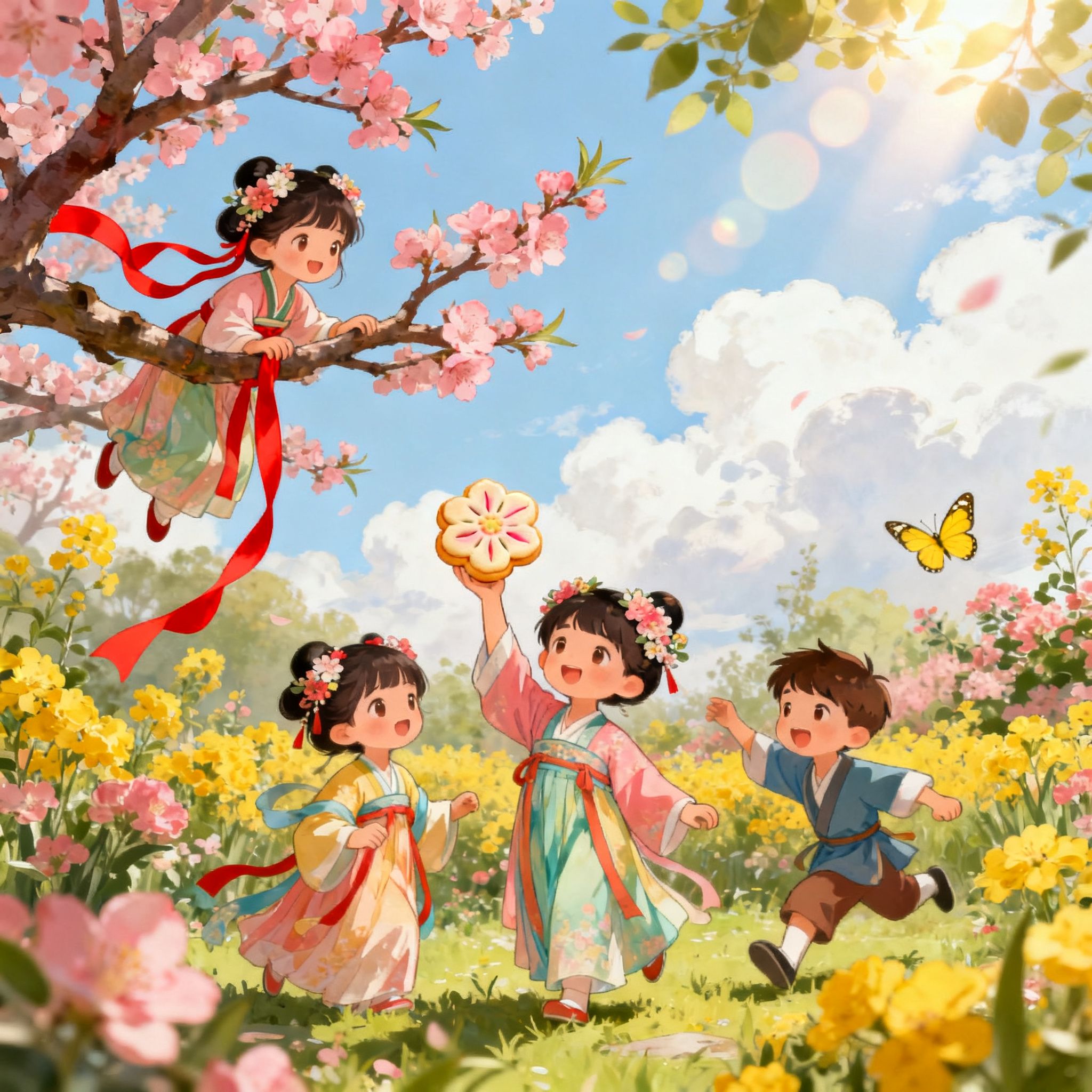 祭花神、系红绸、戴春花、扑蝴蝶、吃花糕,还有斗草、踏青采野菜,超多好玩习俗等你来听!更有杨万里“儿童追黄蝶”的童趣古诗,和现代花朝节的新玩法哦!