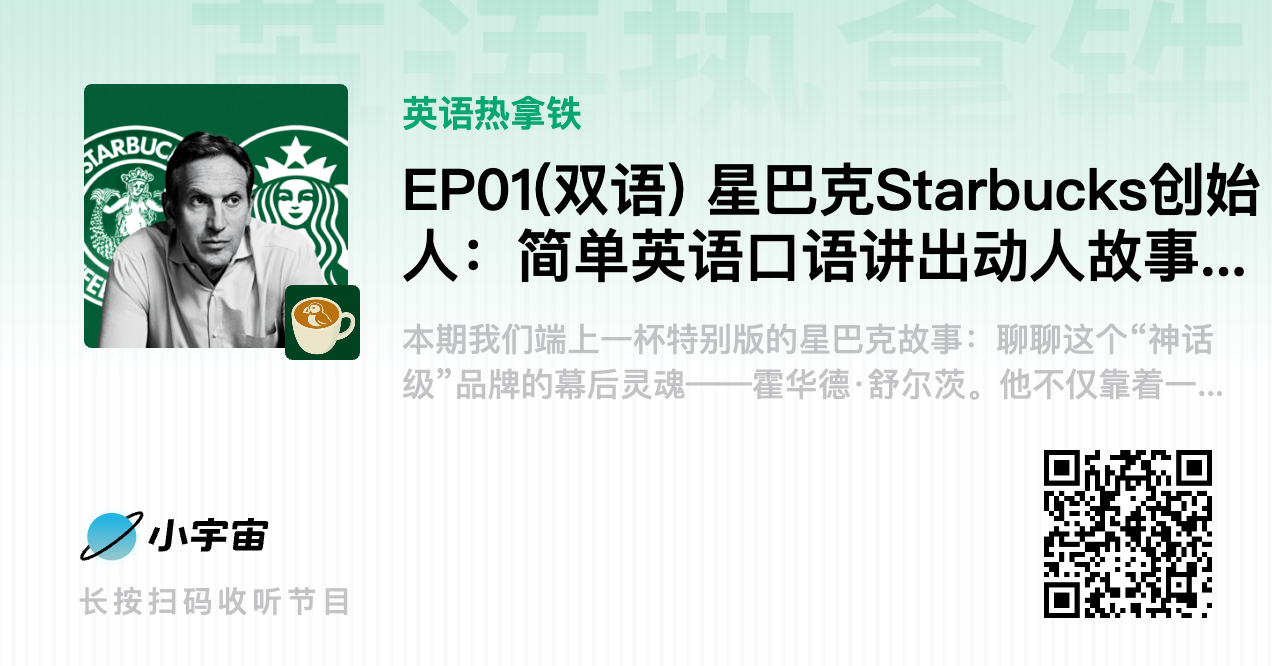 如果你对商业品牌背后的语言魅力感兴趣,千万不要错过 George 的另一档播客——《英语热拿铁》(English Hot Latte)! 在《热拿铁》的第一期节目里,我们专门深度拆解了舒尔茨那种极具感染力的沟通艺术。想知道这位大师是如何用最简单的词汇讲述最动人的故事吗?听完这一集《冰美式》,记得去《英语热拿铁》“续杯”,带你领略语言与商业碰撞的火花!