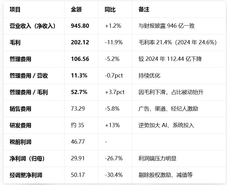 贝壳2025 年核心财务指标(全年)