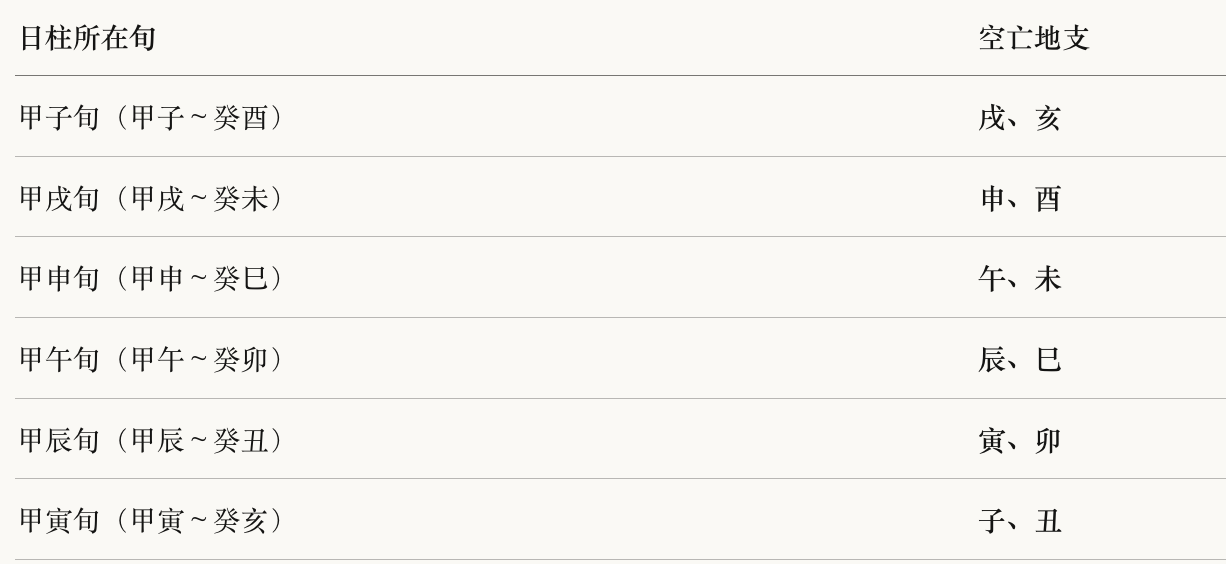 八字中的最主流、最通用的方法是以日柱定空亡,查询原局、大运、流年是否逢空。