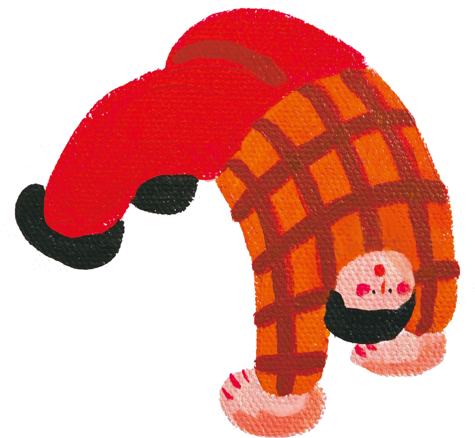我觉得每个人都会焦虑吧,也都会有一些负面情绪。下腰女孩也不是一个只有快乐一面的女孩,她也会EMO、想躺平,没有必要回避,所以我其实在「不倦的涌动」这个展览里,就刻意表达了她不同以往的一些状态。比如她在水上自由地漂浮、她不顾一切地跳入水中,还有她在独木舟上面一个人划船,这些其实都是在表达下腰女孩也会有希望自己独处,跟自己沟通的一面,也有比较松弛、平静的一面。我希望让大家看到下腰女孩更加真实、多元的一面。